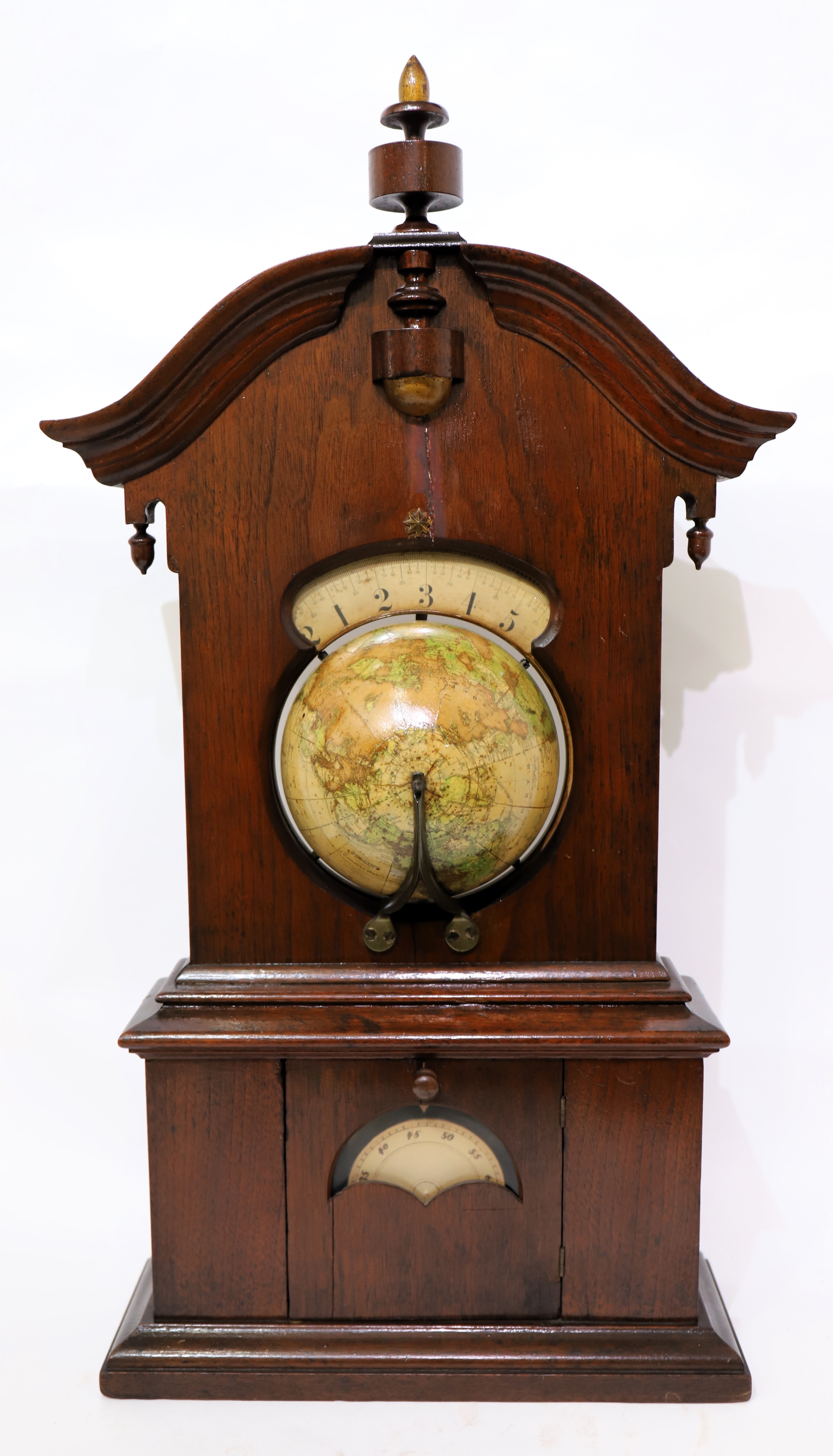 the window with the paper time strip; the strip rotates with the globe. The globe is sun-faded and has some spotty losses; it