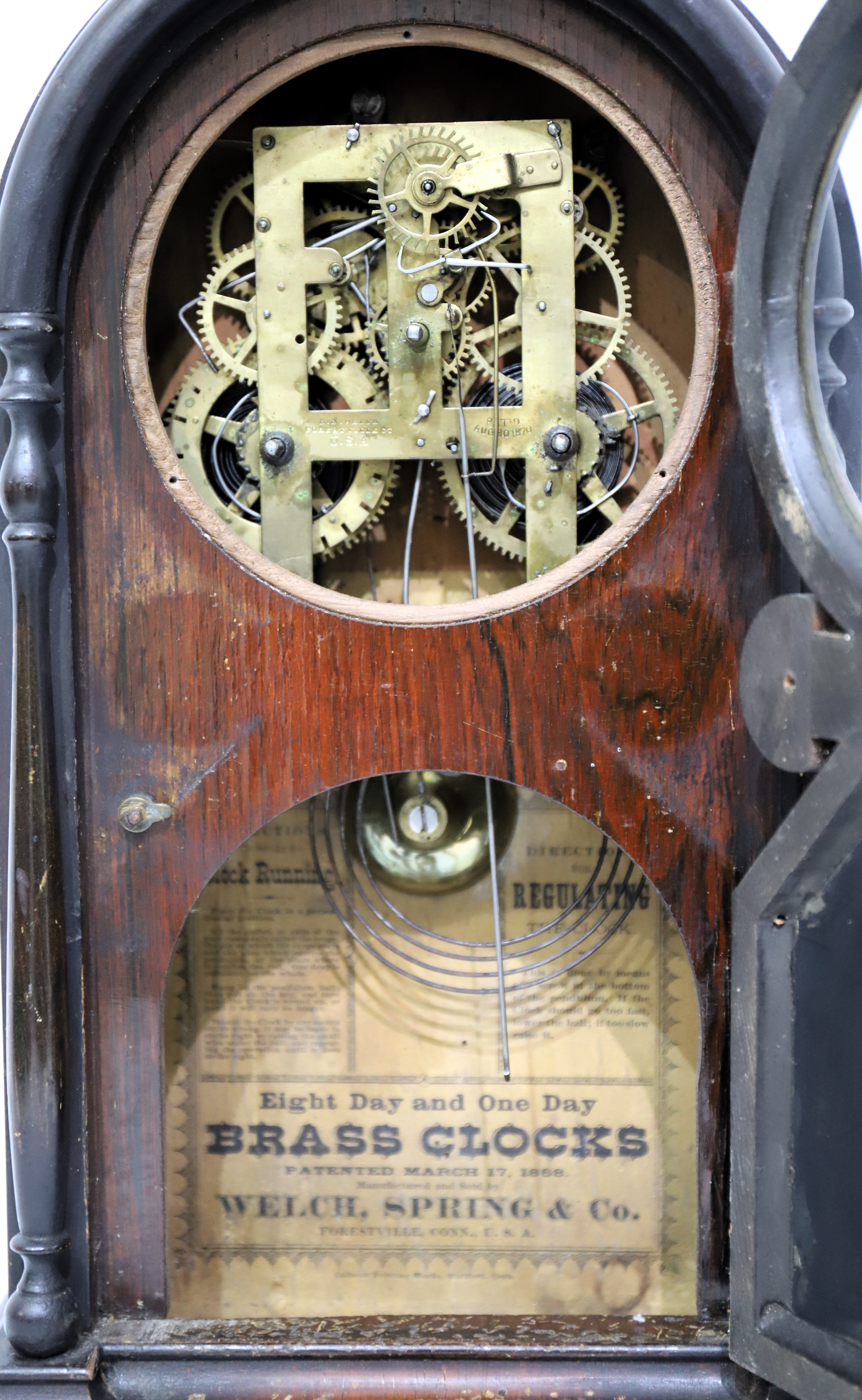 Welch, Spring & Co. “Empress” with columns, ca. 1885. A 17.5-inch rosewood case with a dark finish and too much patina. Cleaning may be in order. Both glasses appear to be