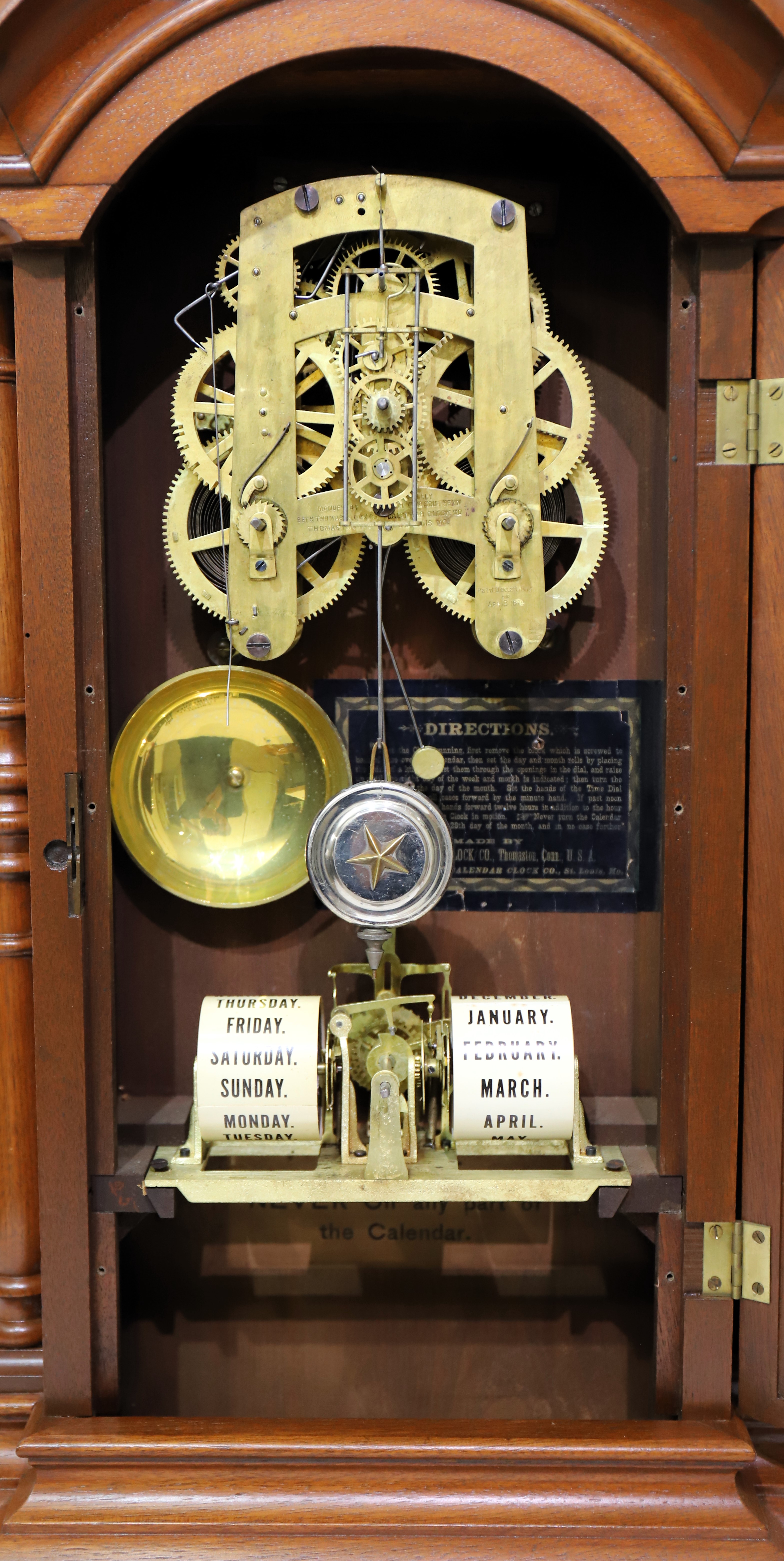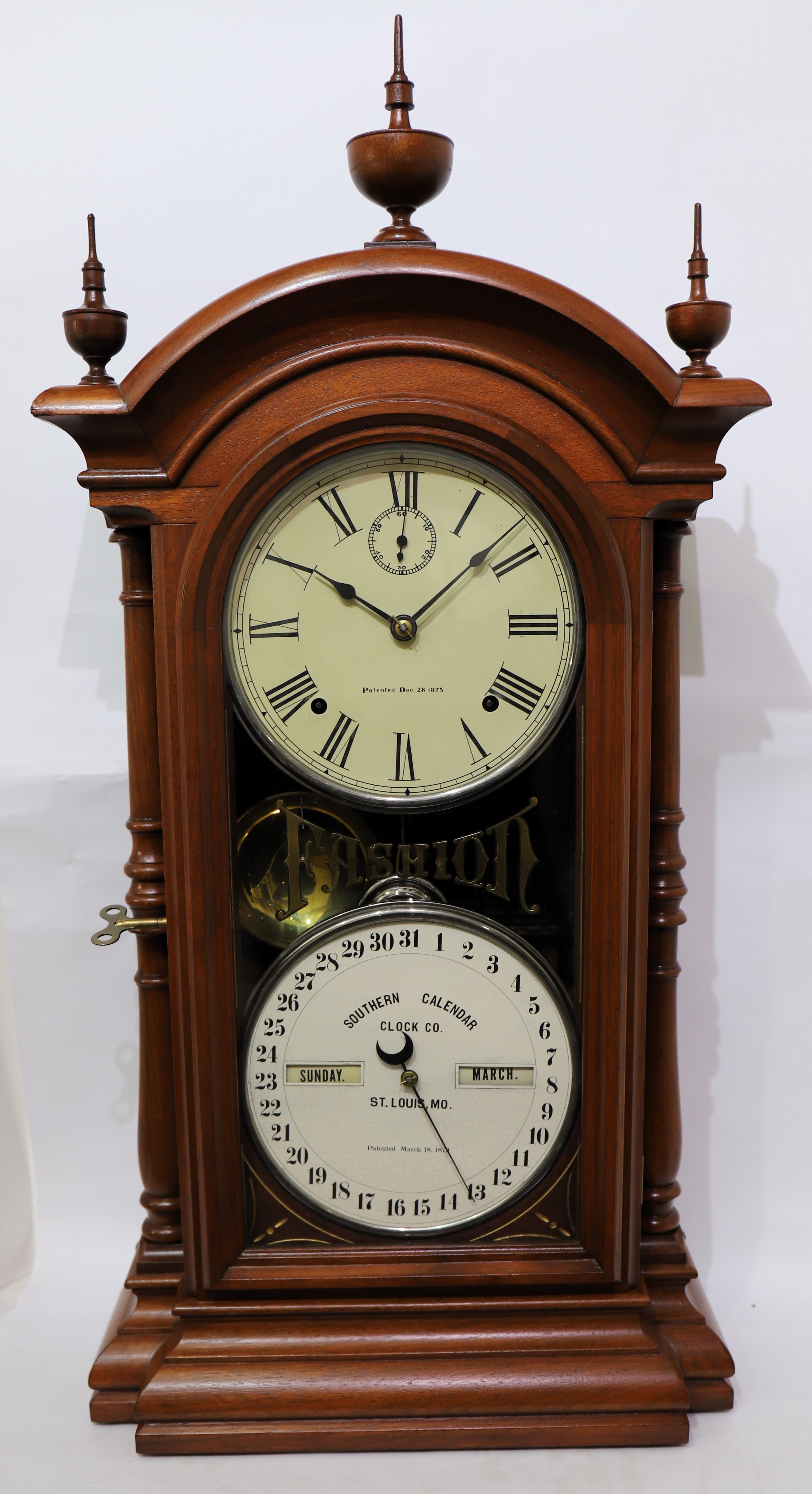 the SCCC, as stamped on the movement; it is running and striking. The replacement R.T. Andrews calendar movement advances properly