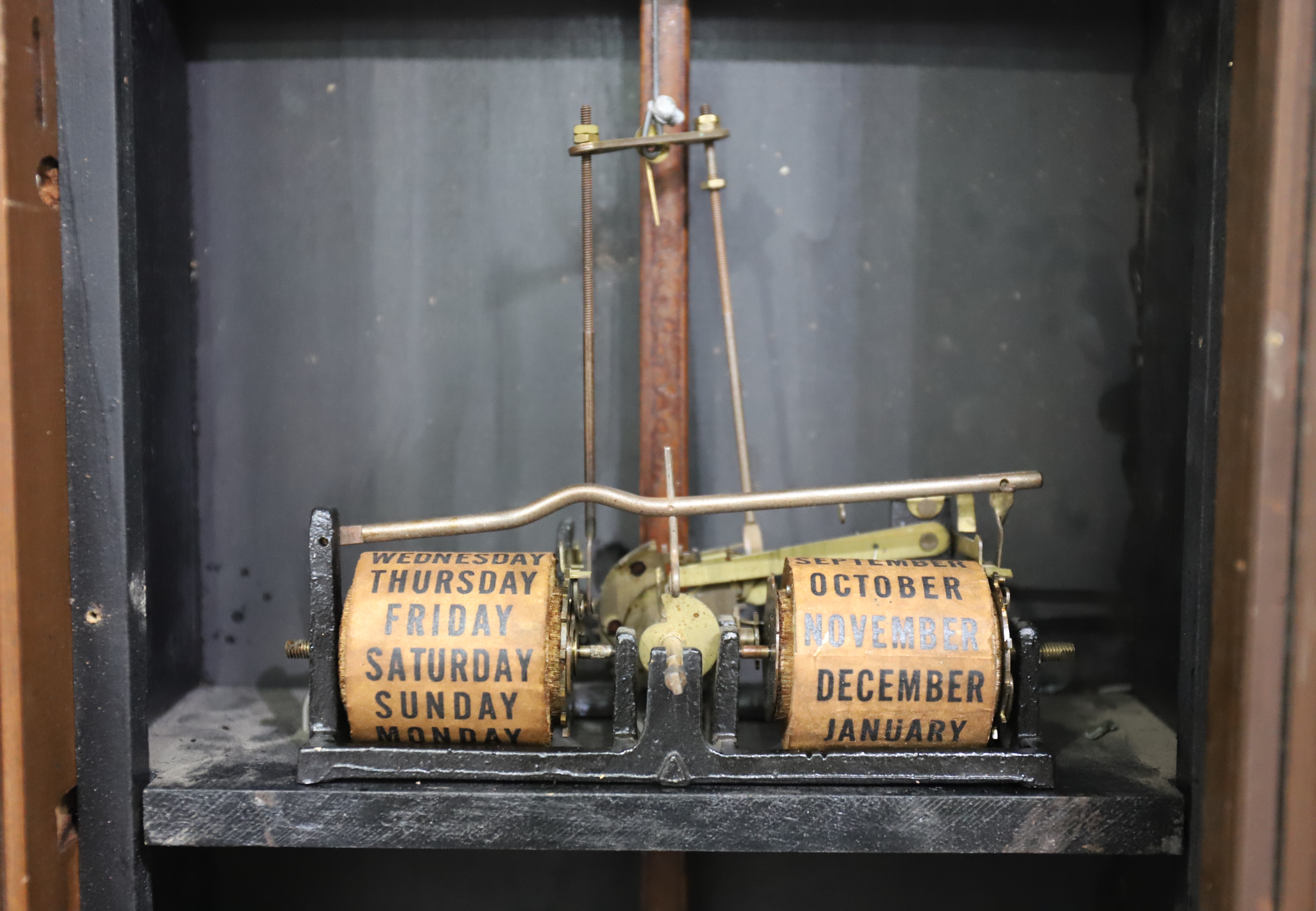 movement. The calendar mechanism certainly looks like an original, with very old roller papers. The paper dials are proper