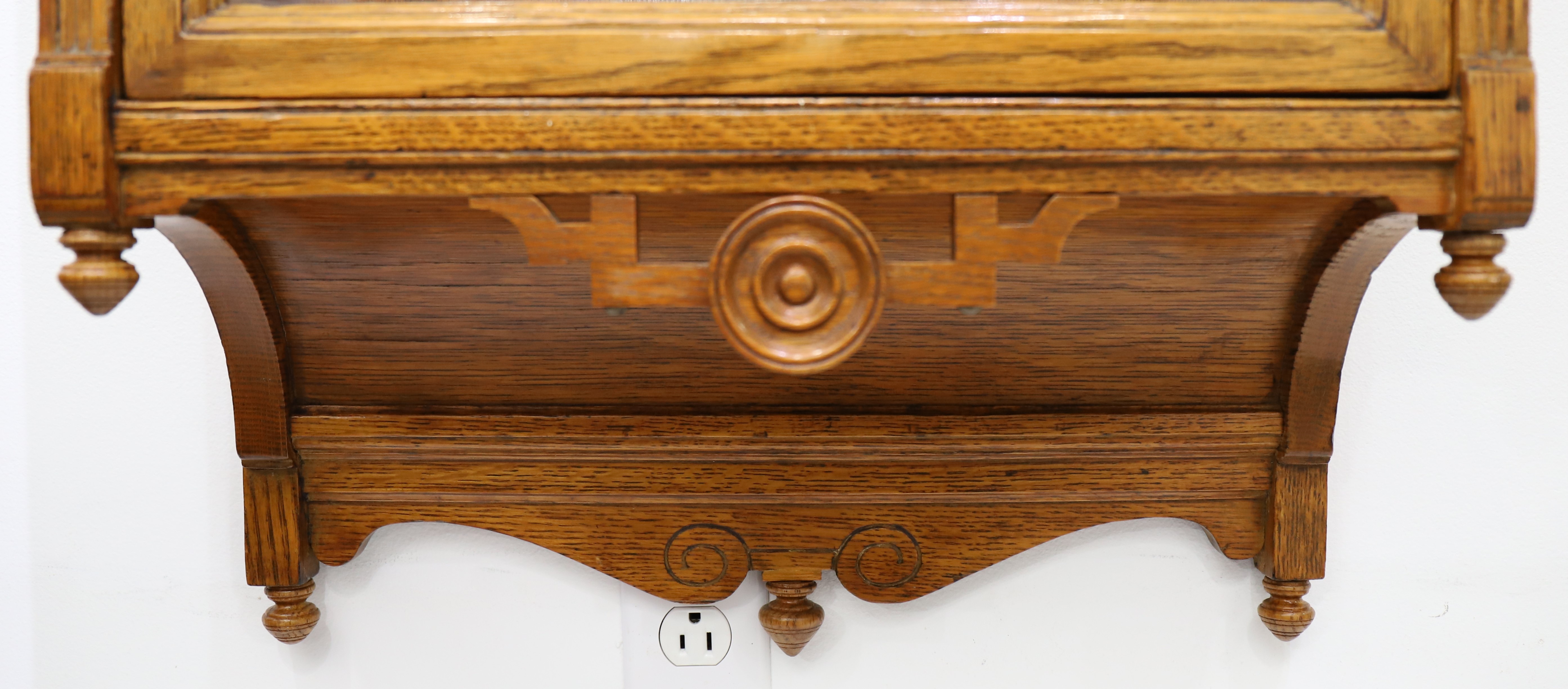 this one came out of a railroad station in Toronto Canada. The 68-inch solid oak case has an old finish in fine shape; all the