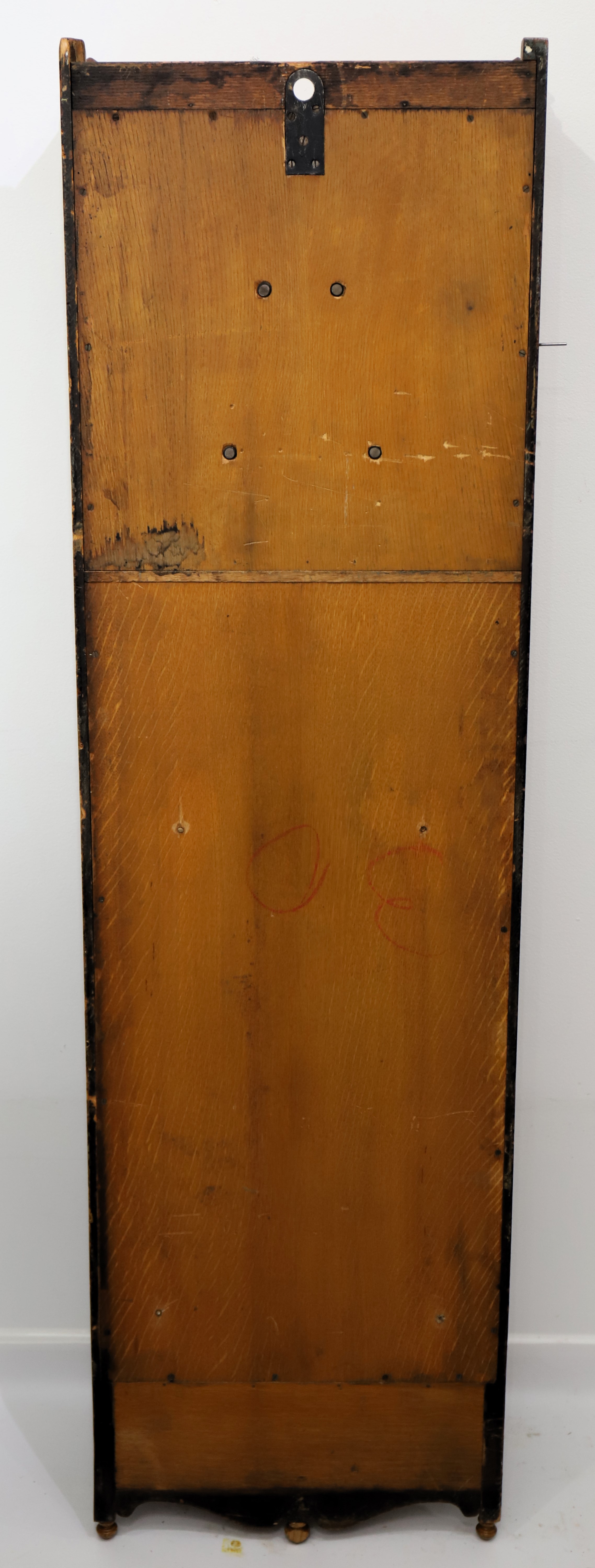 the case. Remarkably, both glasses appear to be original; the dial was repainted by The Dial House, the hands are original. The Movement No. 62 is correct for this model (See Ly, Seth Thomas Clocks & Movements, Vol. 1, page 209); it runs 8 days, time-only,