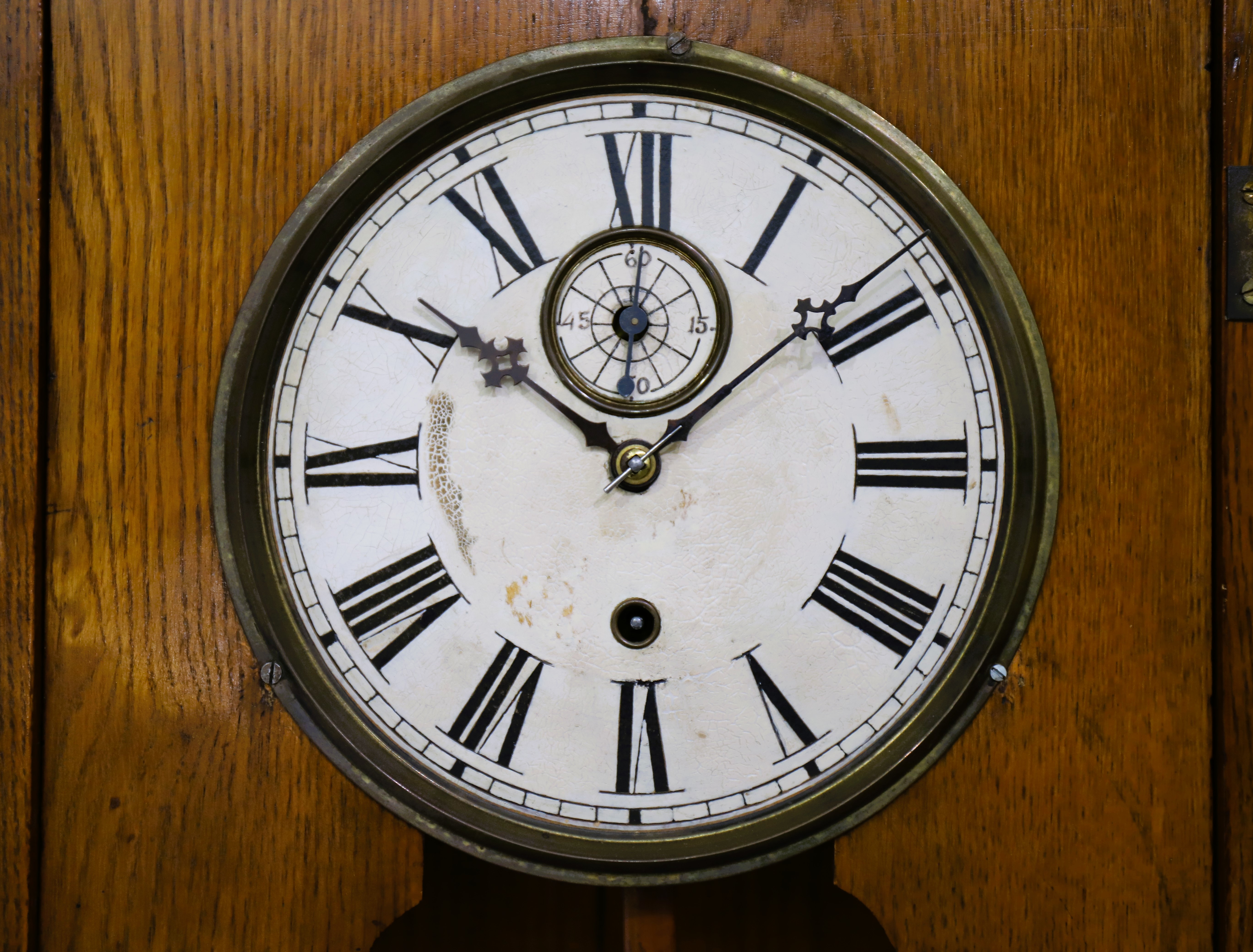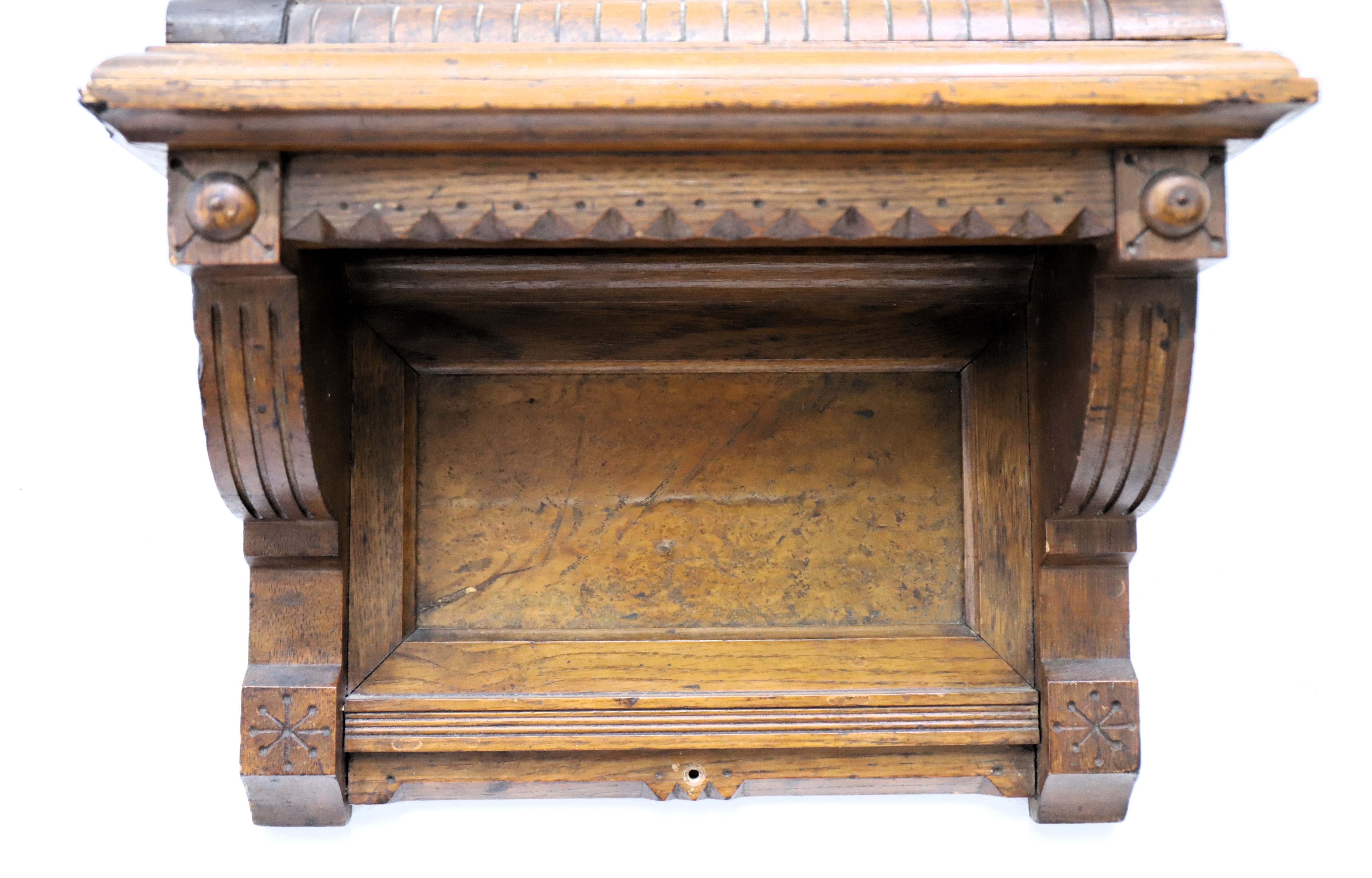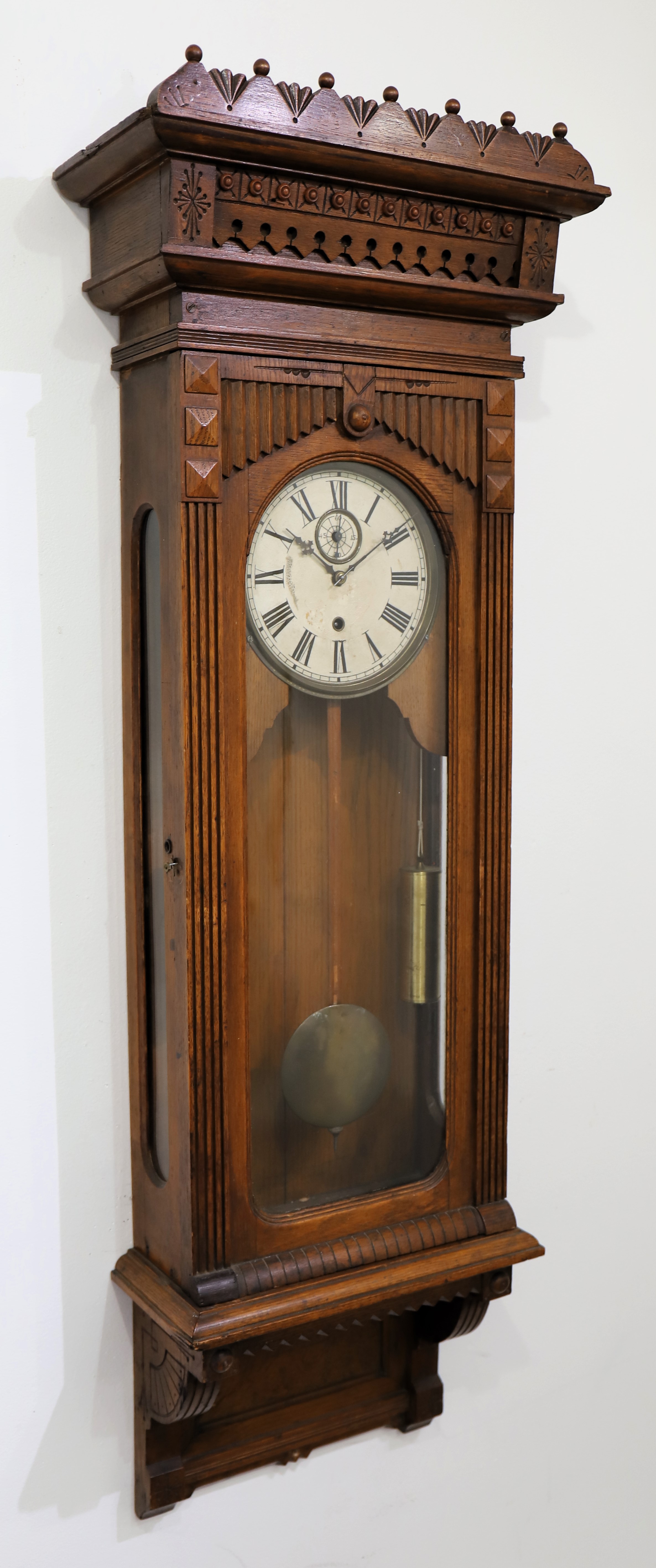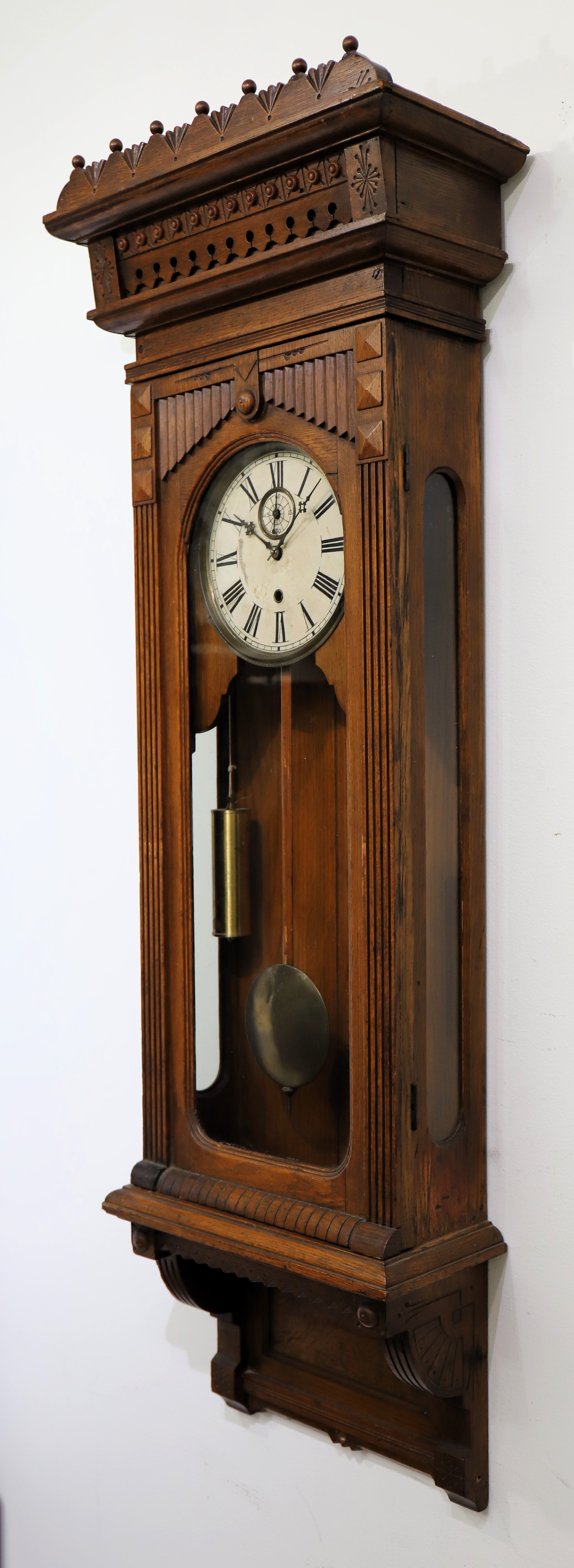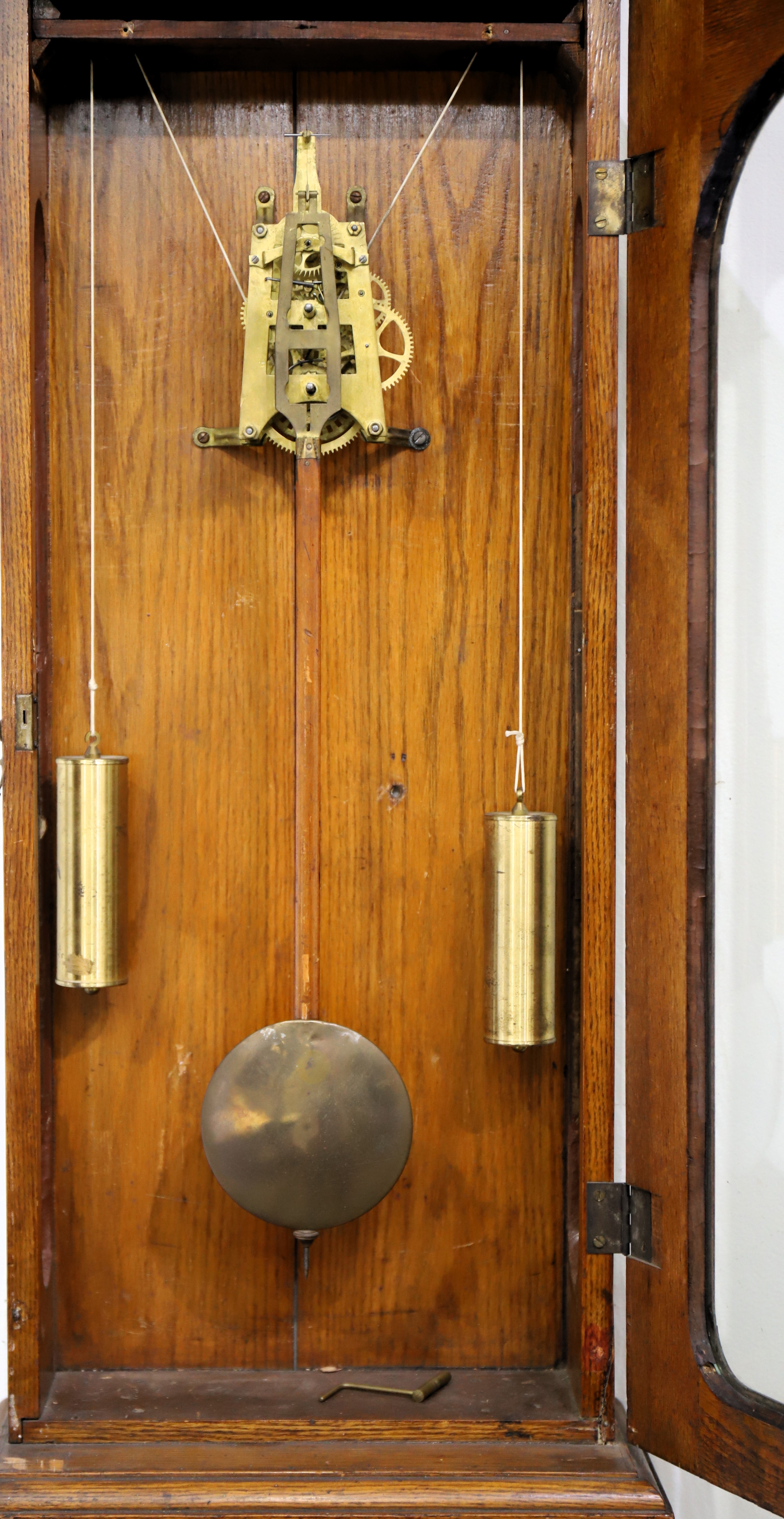second example of this model, this one in oak with a very old and neglected finish. The 50-inch case has a slightly different