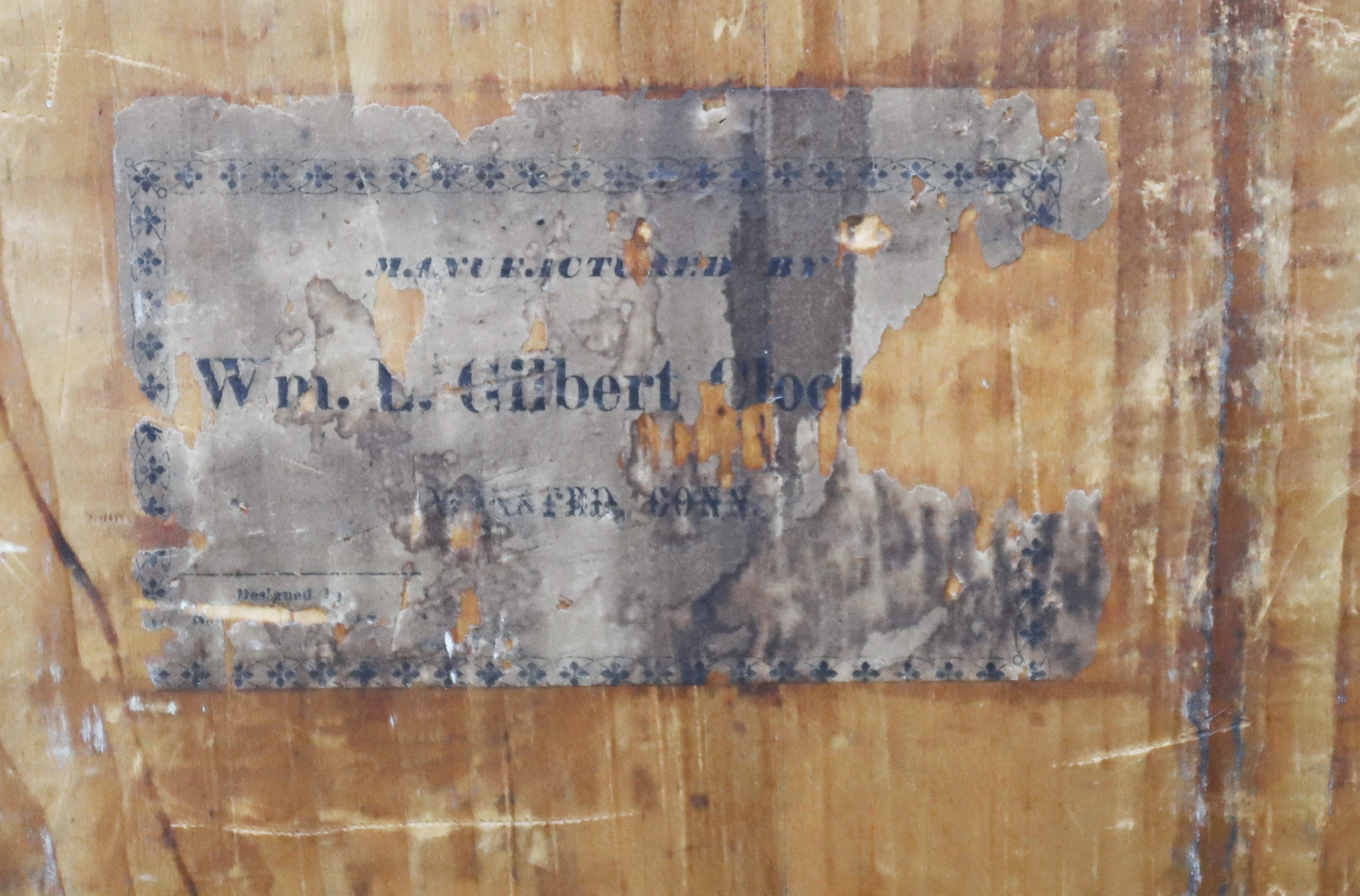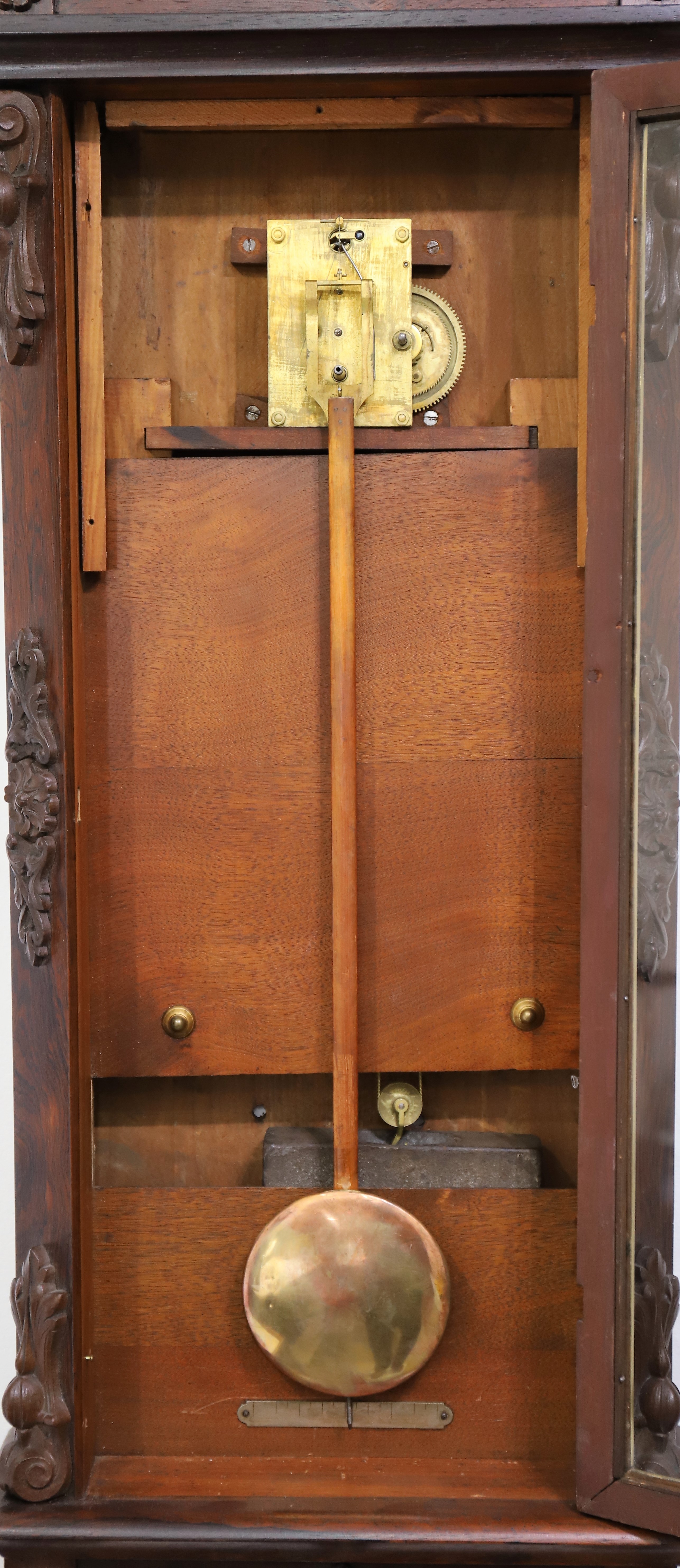 of Gilbert’s finer clocks, the rosewood case is 49.5 inches long with an old, clean finish and old glass in the door. There