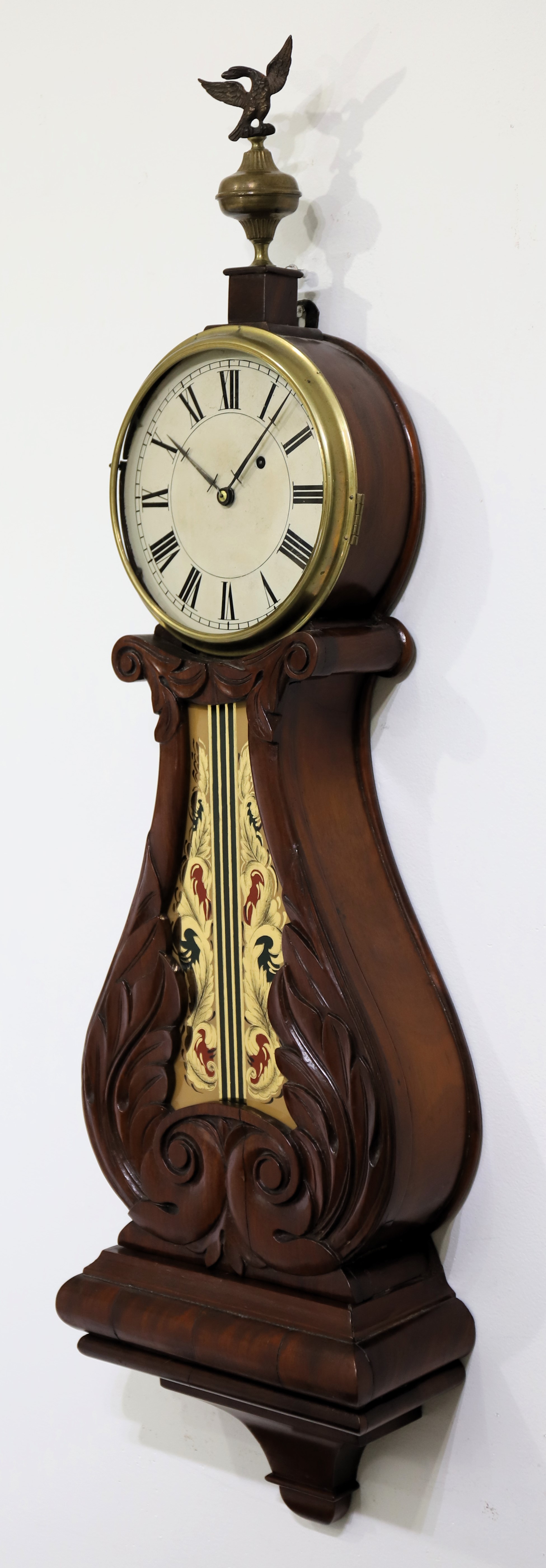 J. Foley, Willard’s Patent Time Pieces. The 34-inch carved mahogany case has an old finish with a split to the lyre front and