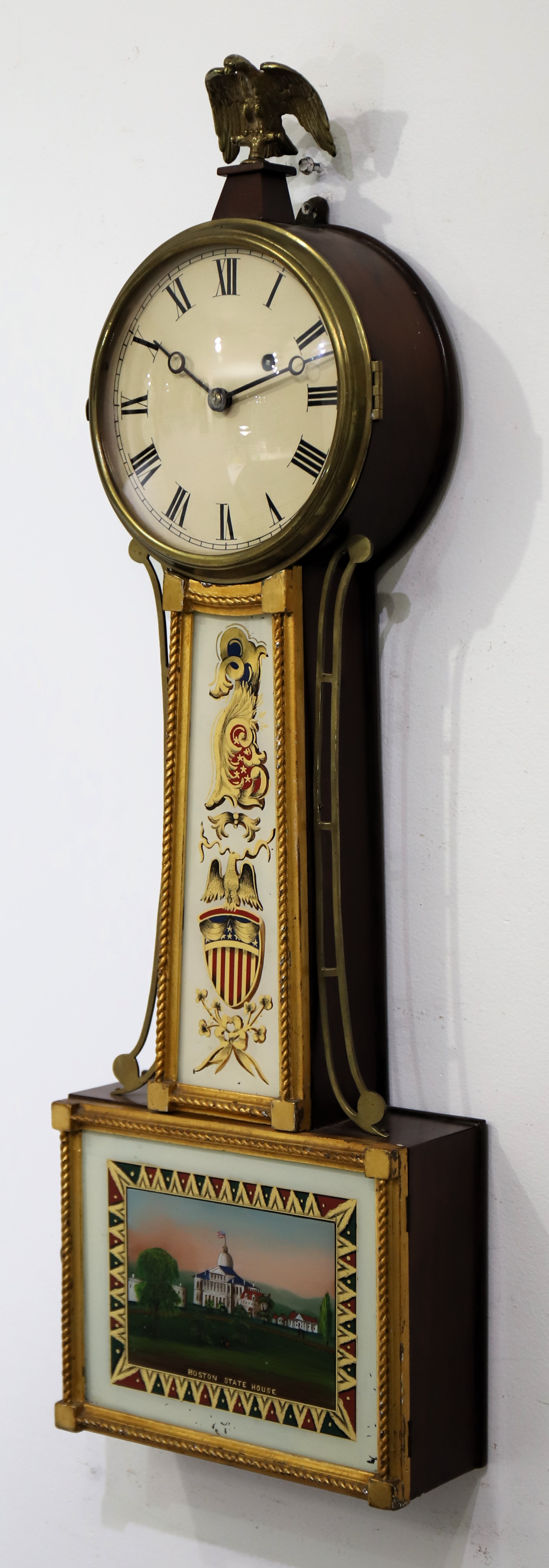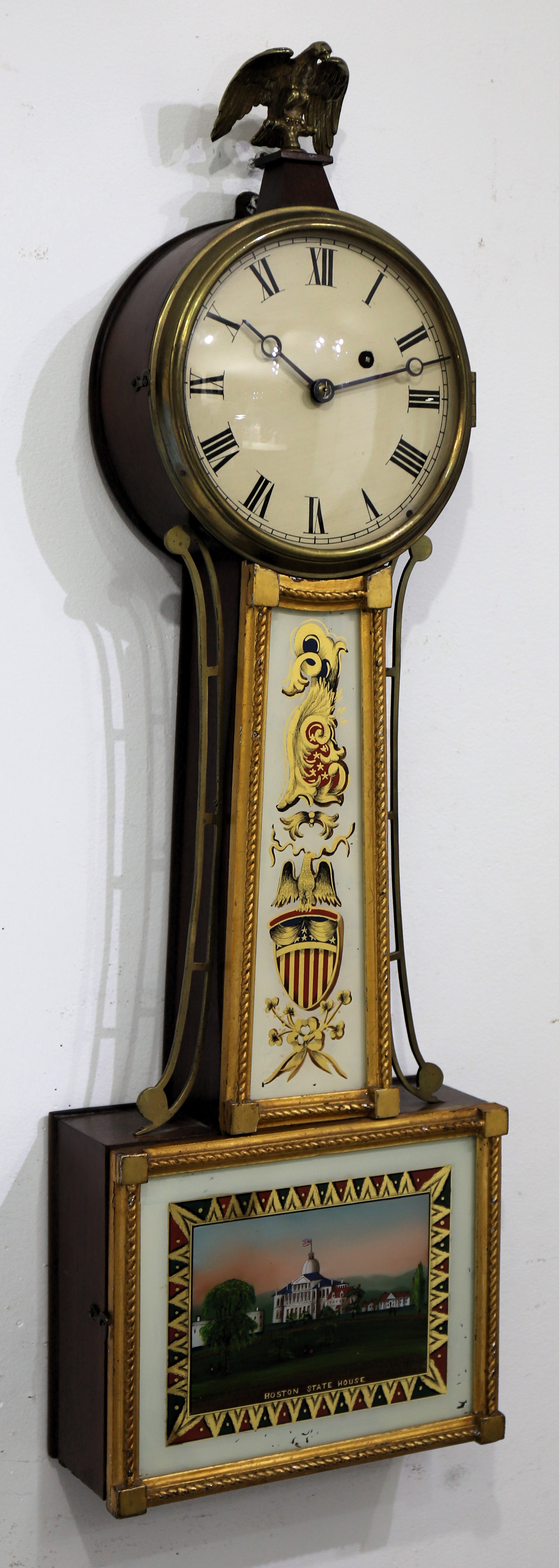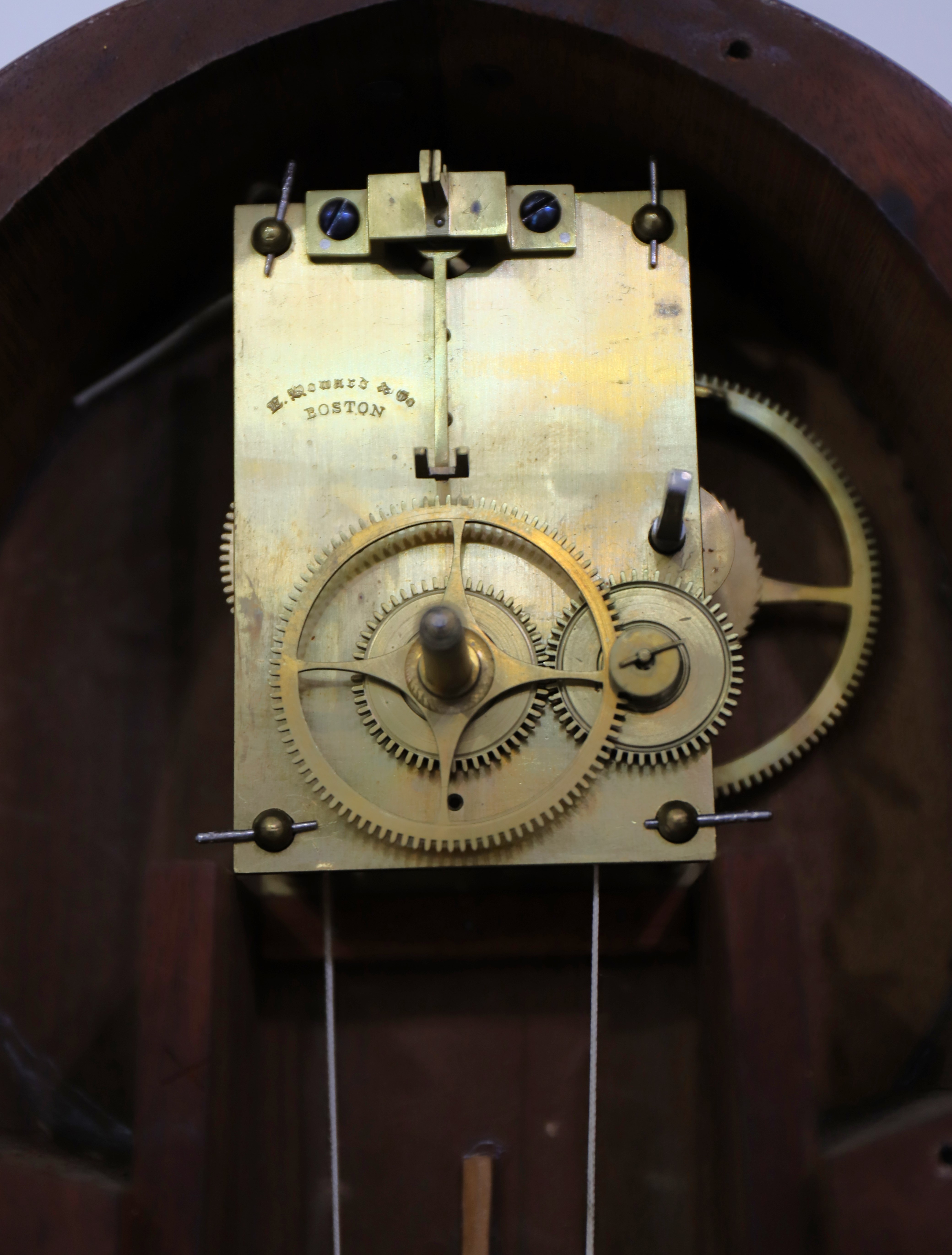 dial holds the original paint with some touch-up; the hands are appropriate. The brass movement is signed E Howard; I could