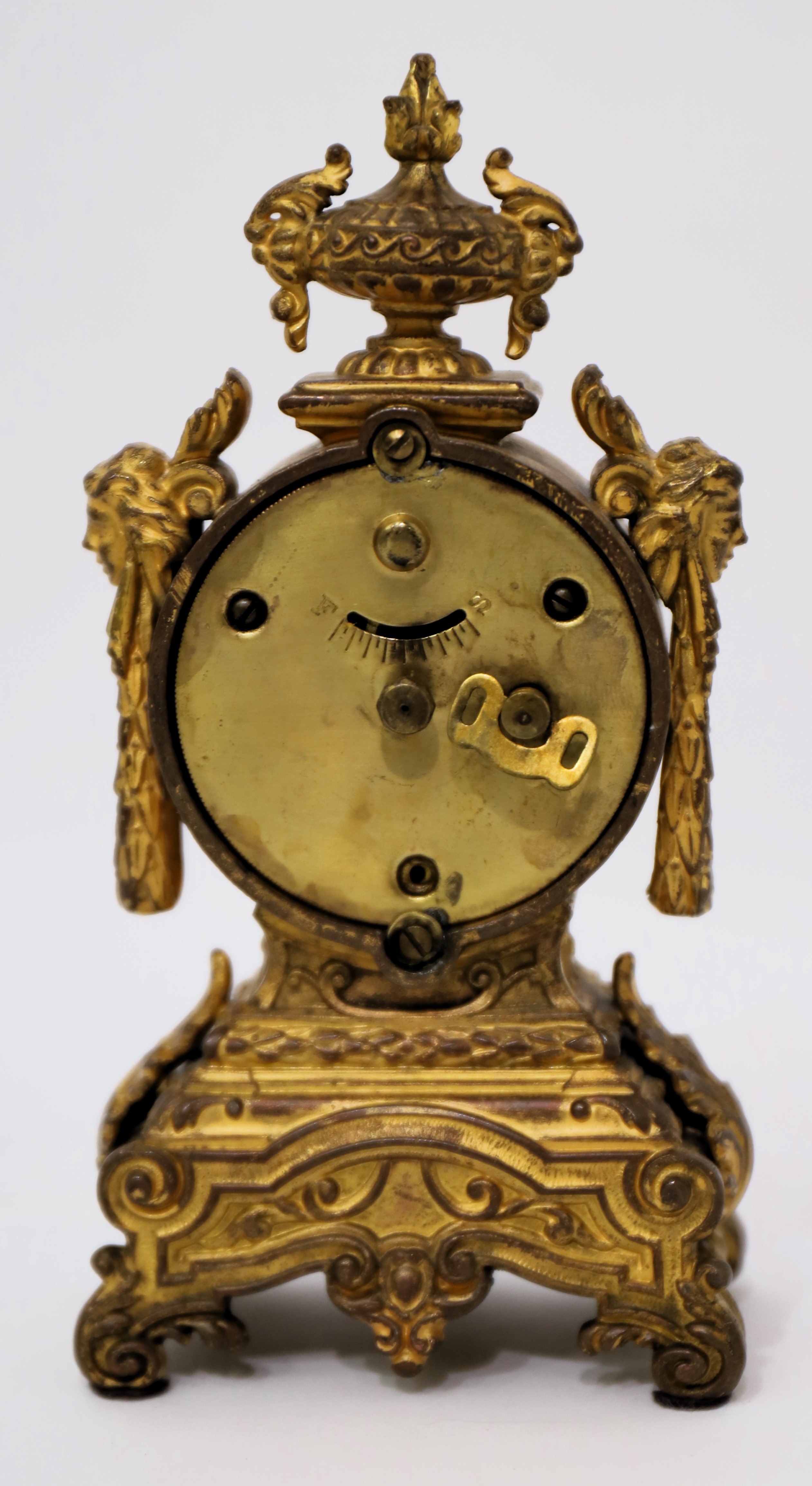 clock with numerous ornaments and partial retention of the original gilding. This one has a silvered dial with a silvered center
