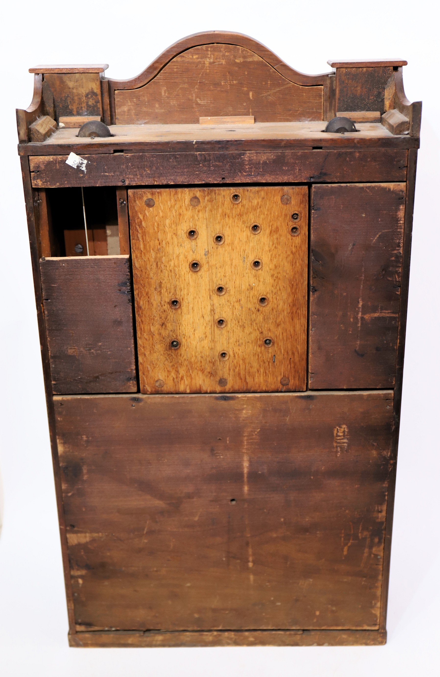 original. The 30-hour wooden movement will run briefly and will strike; there is a period pendulum bob and two small (2.8 lb)