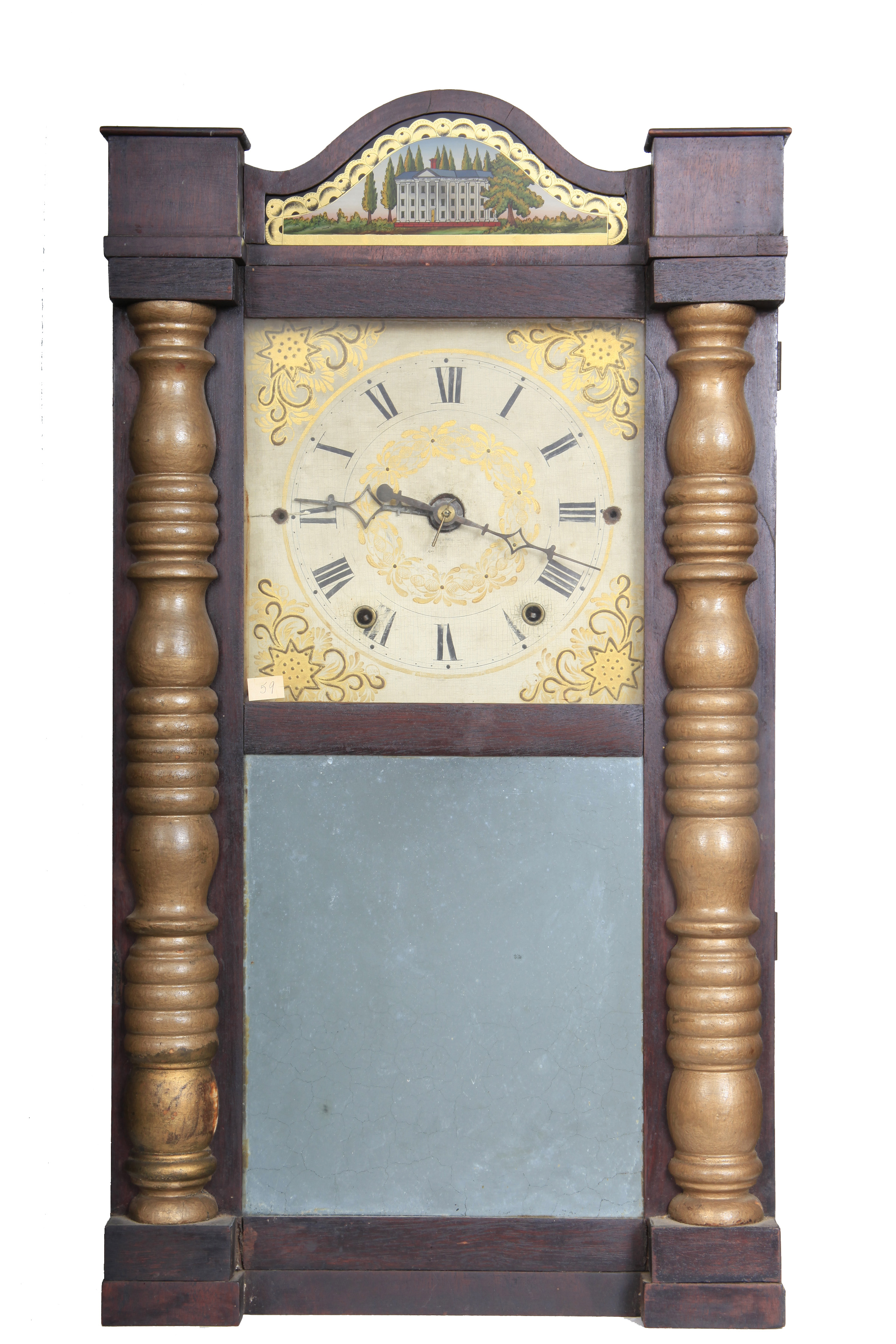 shelf clock, 1824-1832. I believe James and Lucius are best known for pillar & scroll clocks, and I cannot find an example