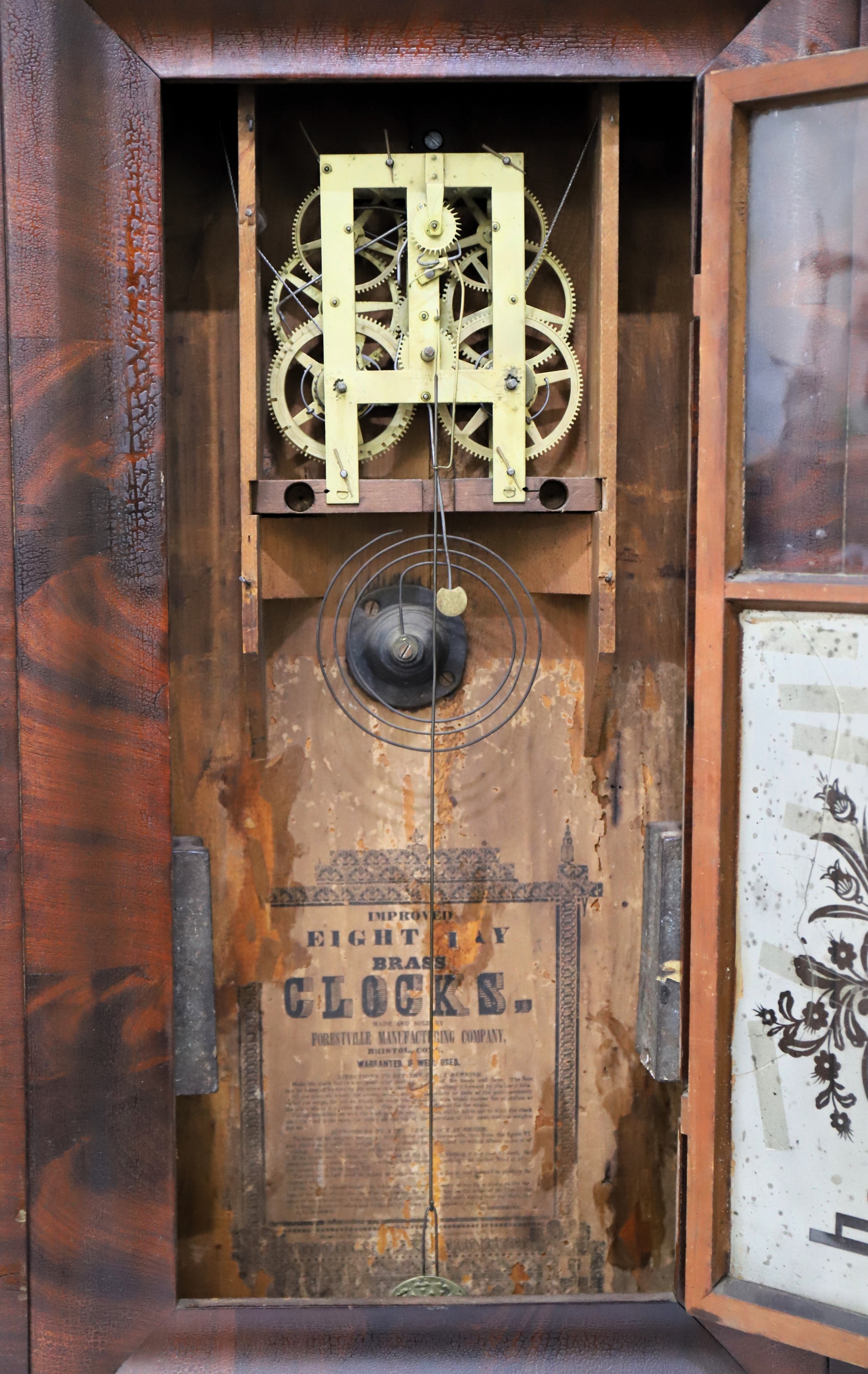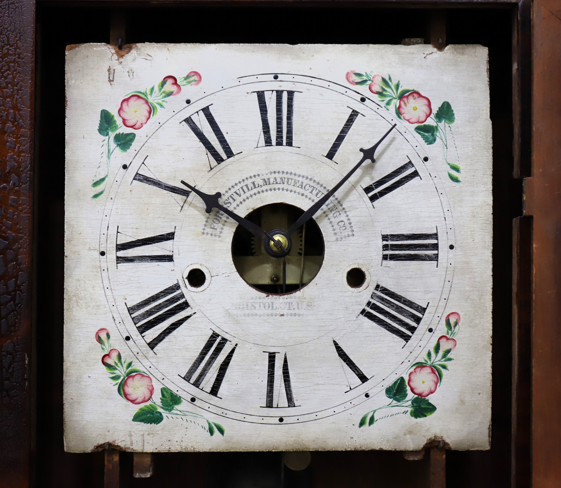 Manufacturing Co., Bristol, CT, U.S.A.” printed in the middle (note the common misspelling of Forestville on the dial). The