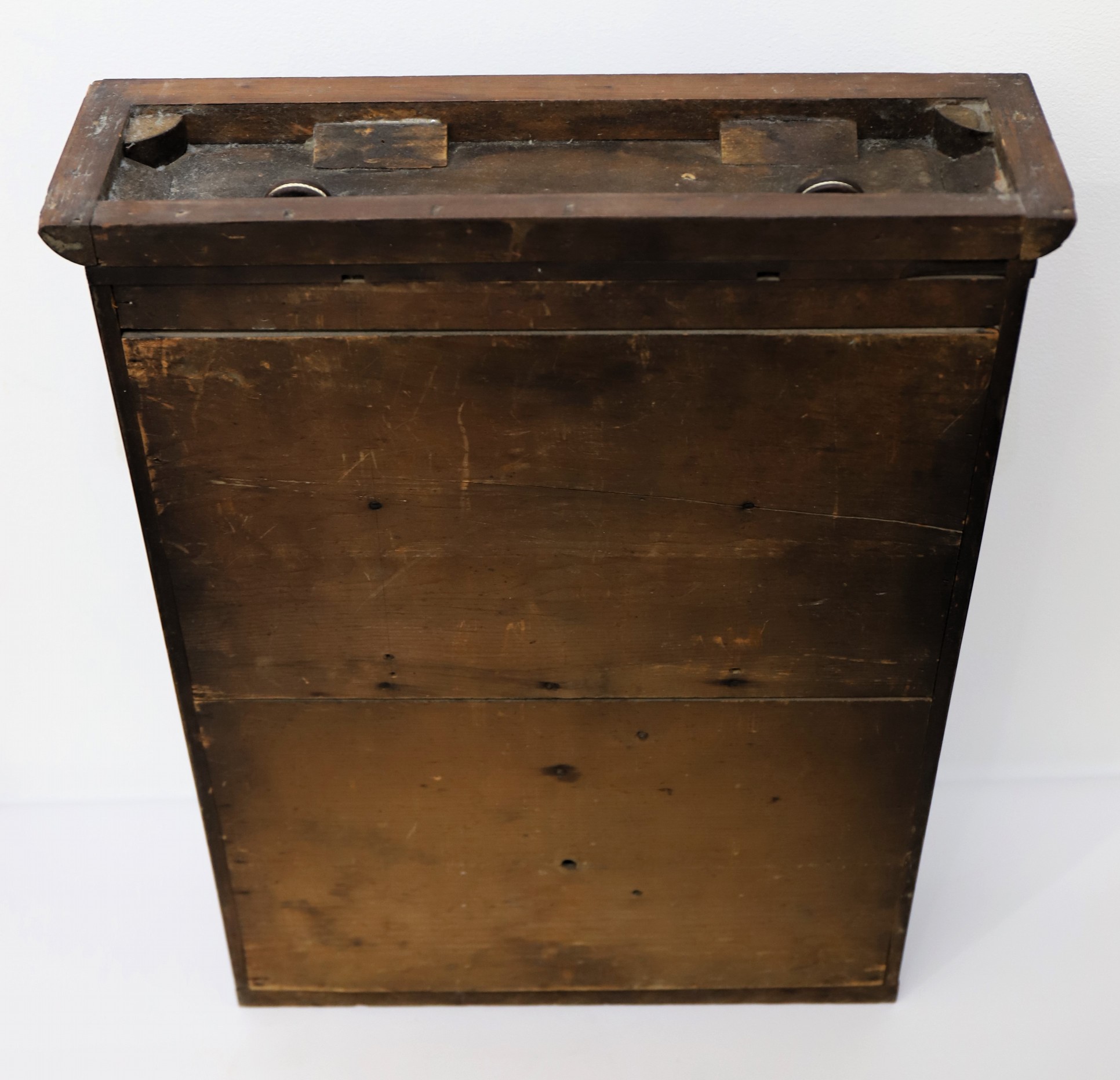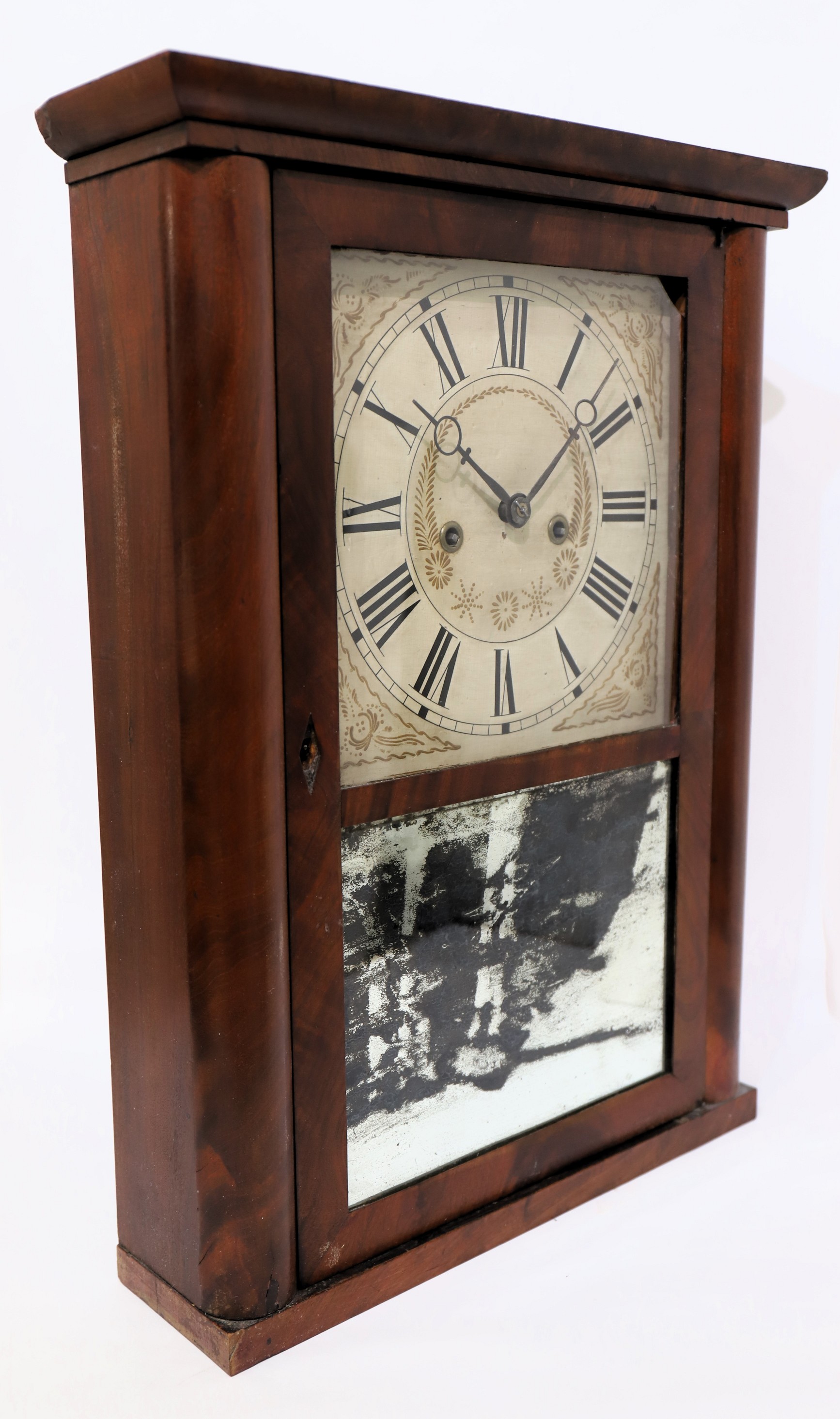 (tuberculosis) in 1841. The case is 23 inches tall, veneered in mahogany; note the rounded front edges. Both glasses are