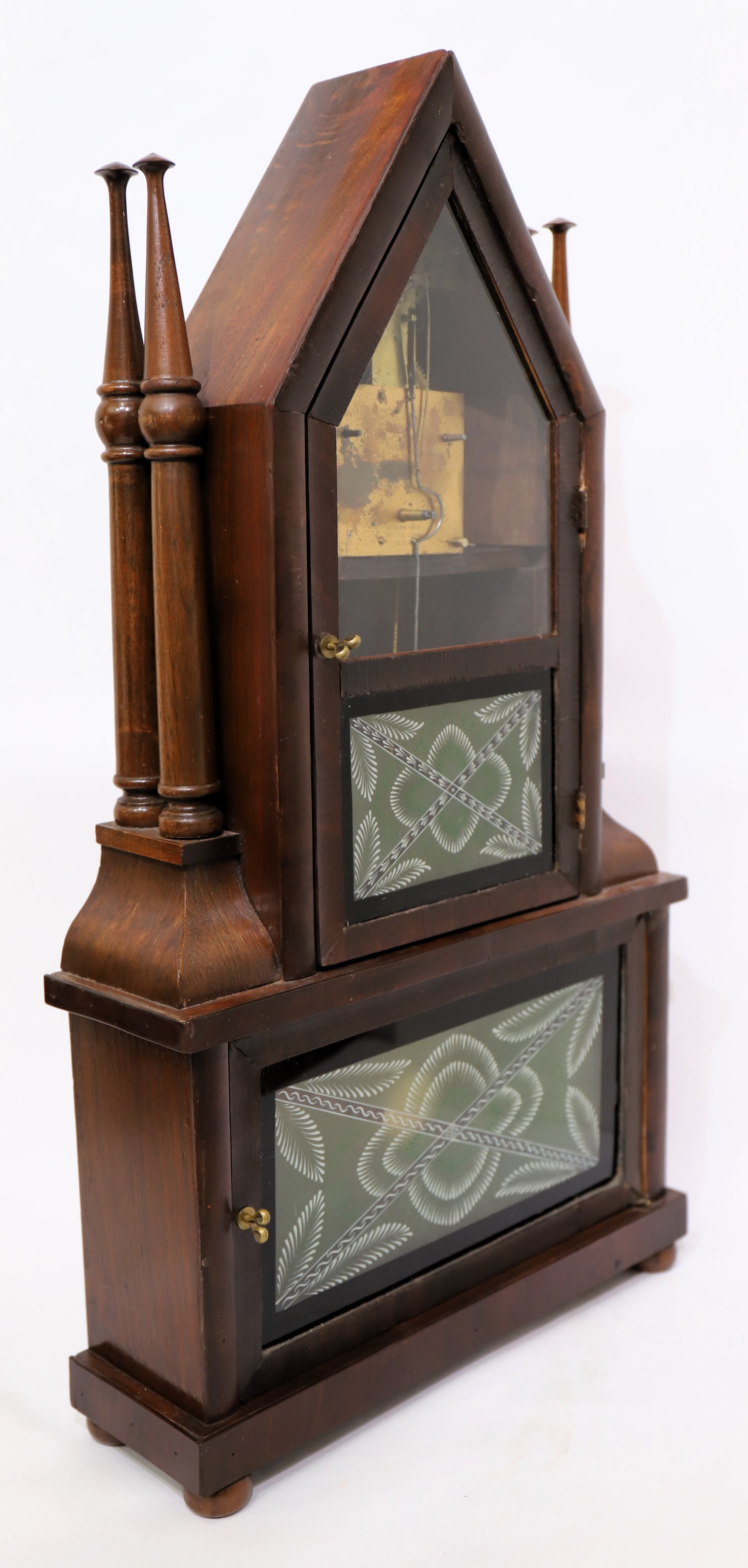candlestick double-steeple with wagon-spring movement, 1850-1856. During this period Ives developed and produced one-month