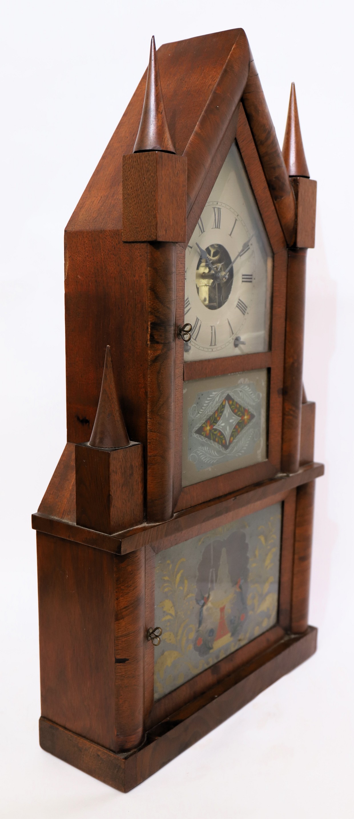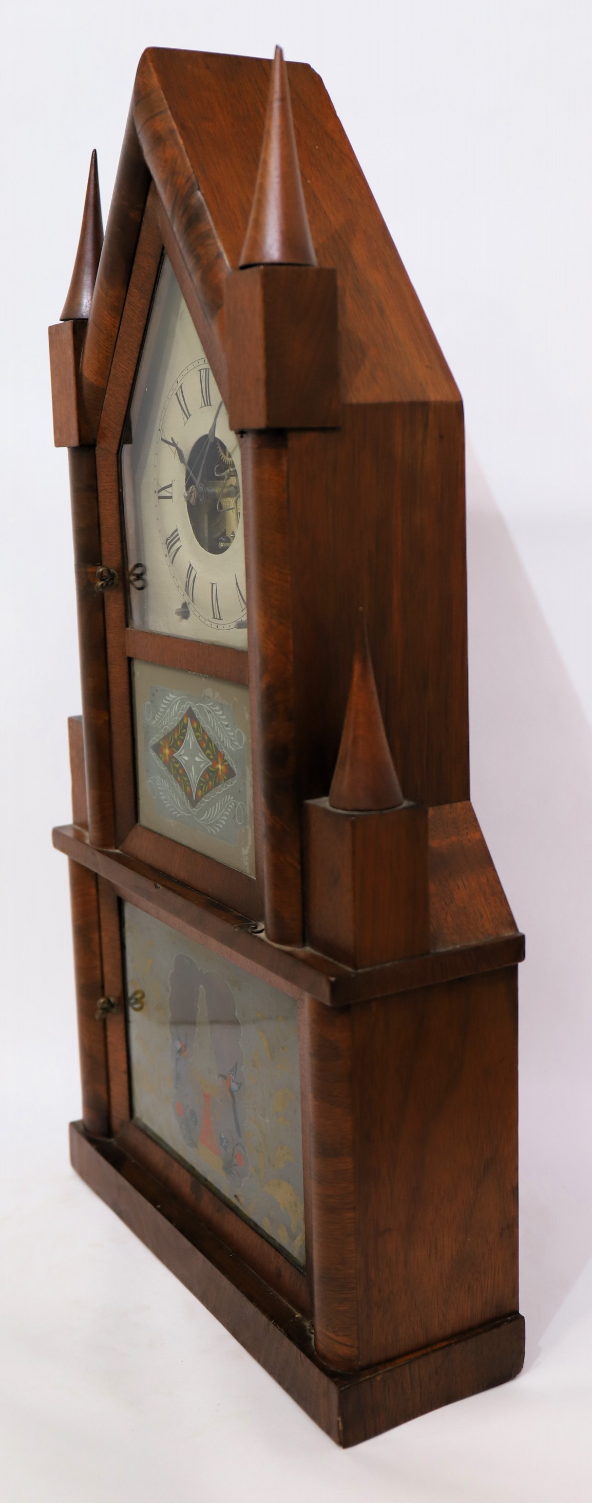 fusee, ca. 1848. A second example of this double steeple with a remote fusee movement. The 25-inch case has a clean, old