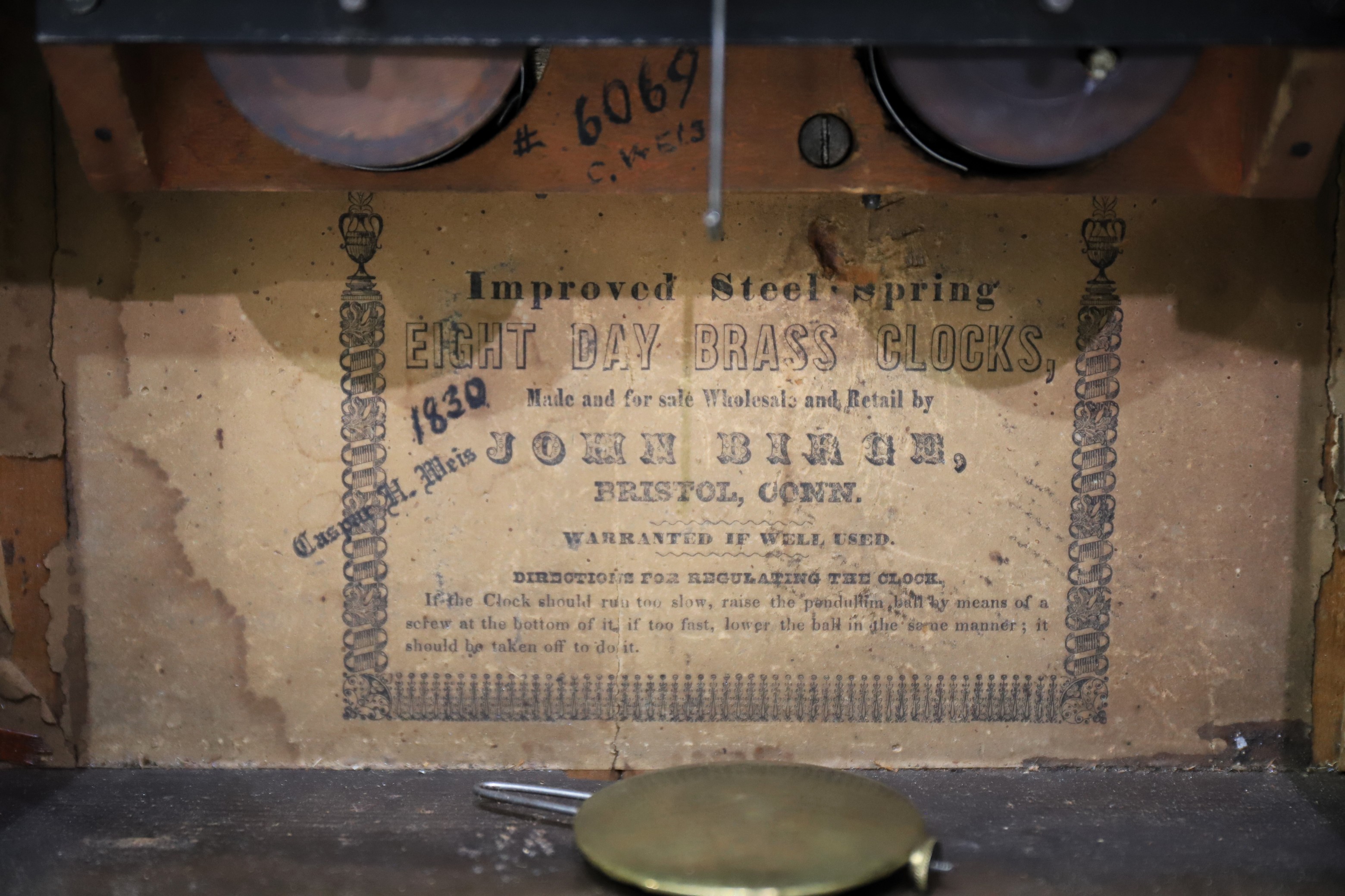 original. The original dial has been repainted and is darkened and chipping again; the hands are replacements. The 8-day,