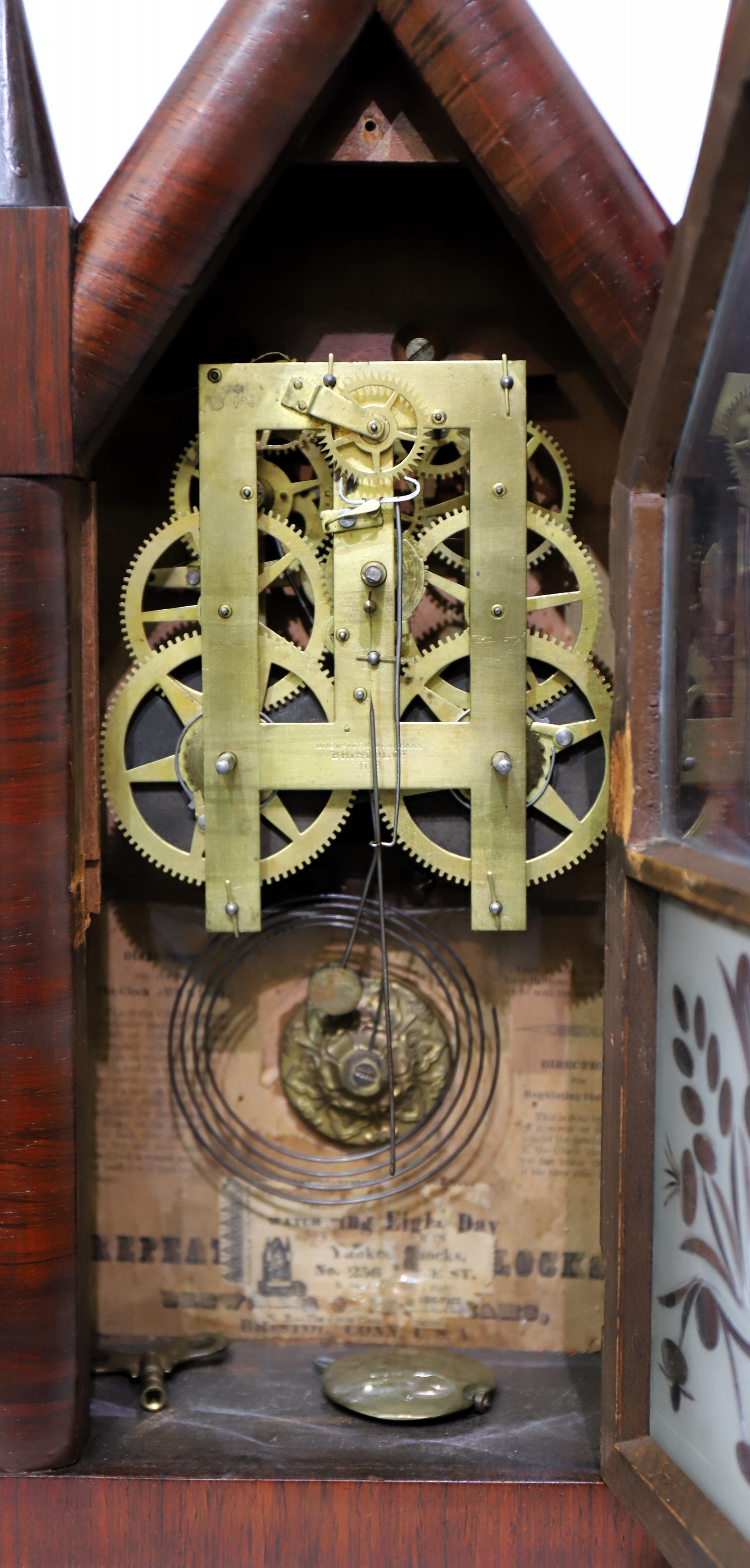 Clock (sharp gothic), 1845–1846. This steeple uses a modified version of Kirk’s patented eight-day repeating brass movement