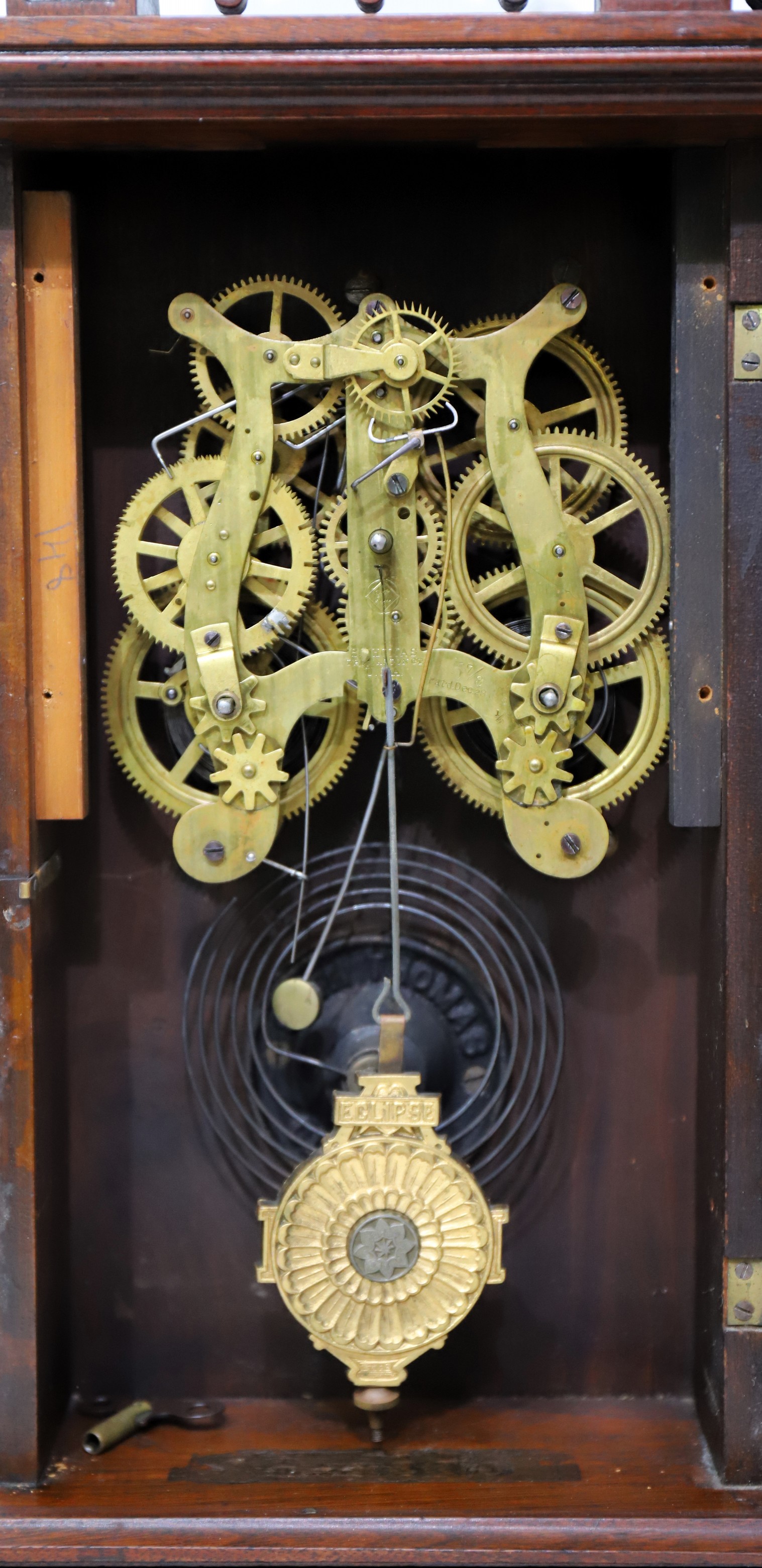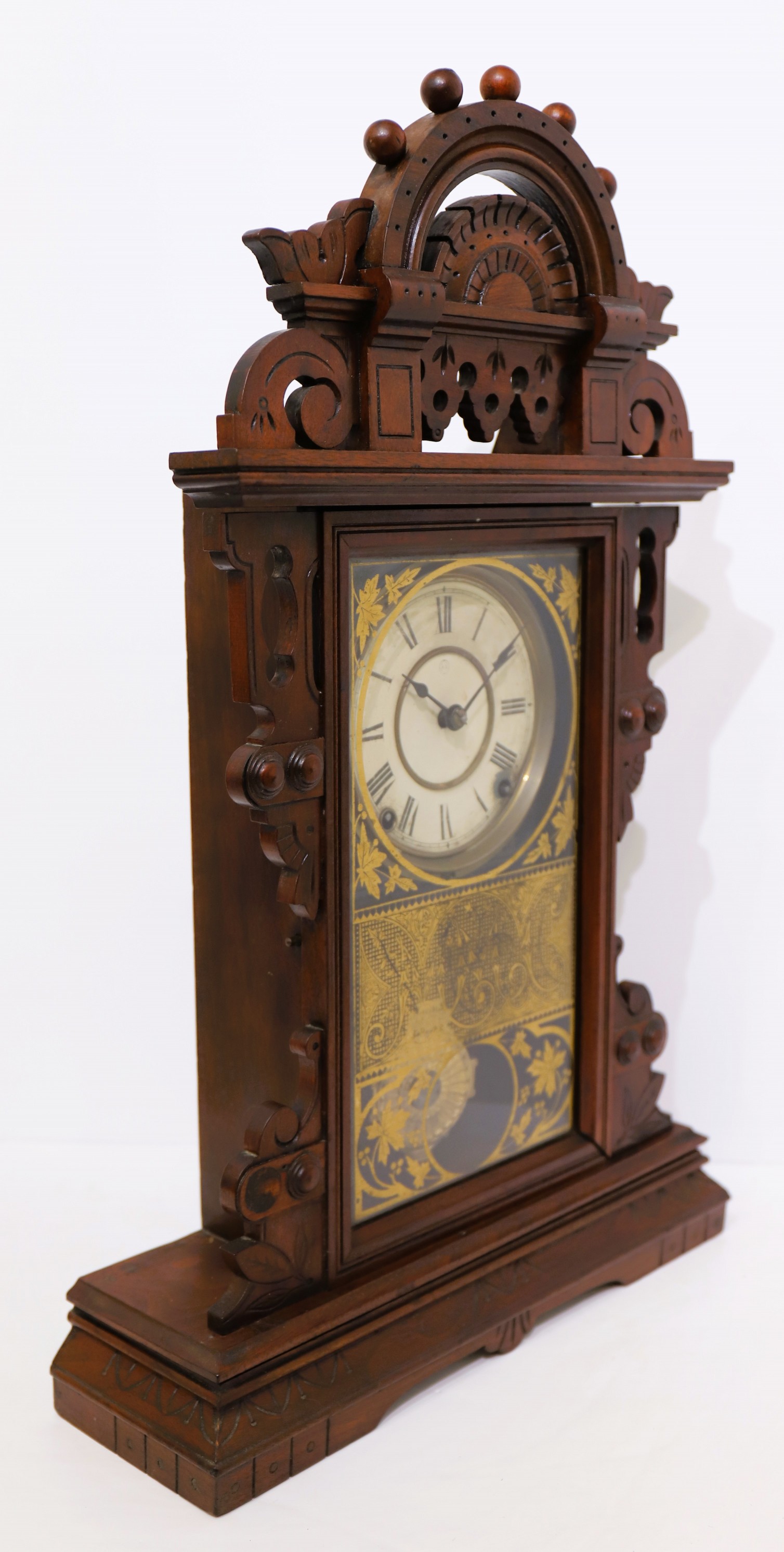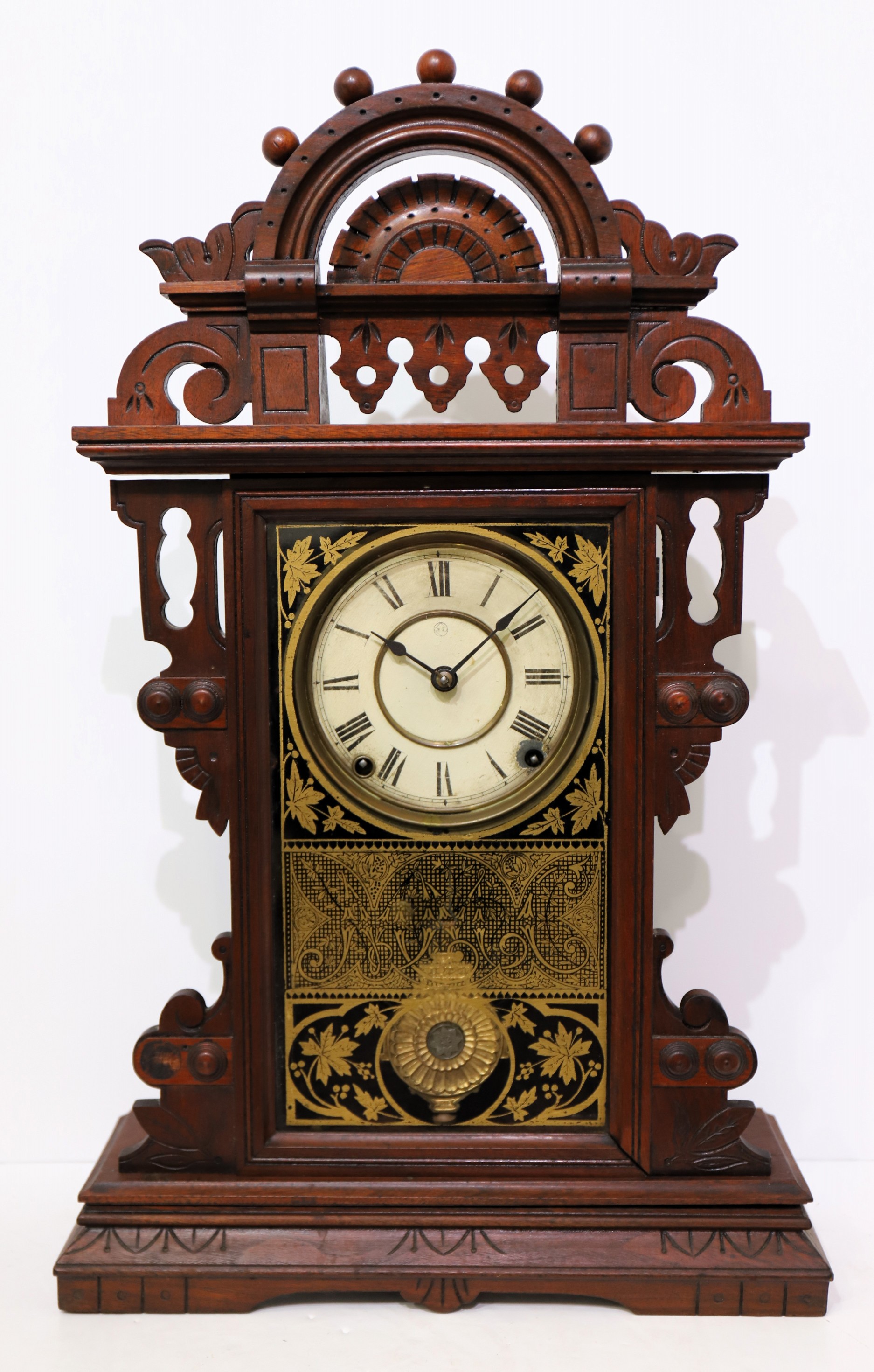 Seth Thomas Clock Co. “Eclipse”, ca. 1890. A popular shelf model; other manufacturers made similar models. Note that the pendulum has ‘ECLIPSE’ across the top, with a