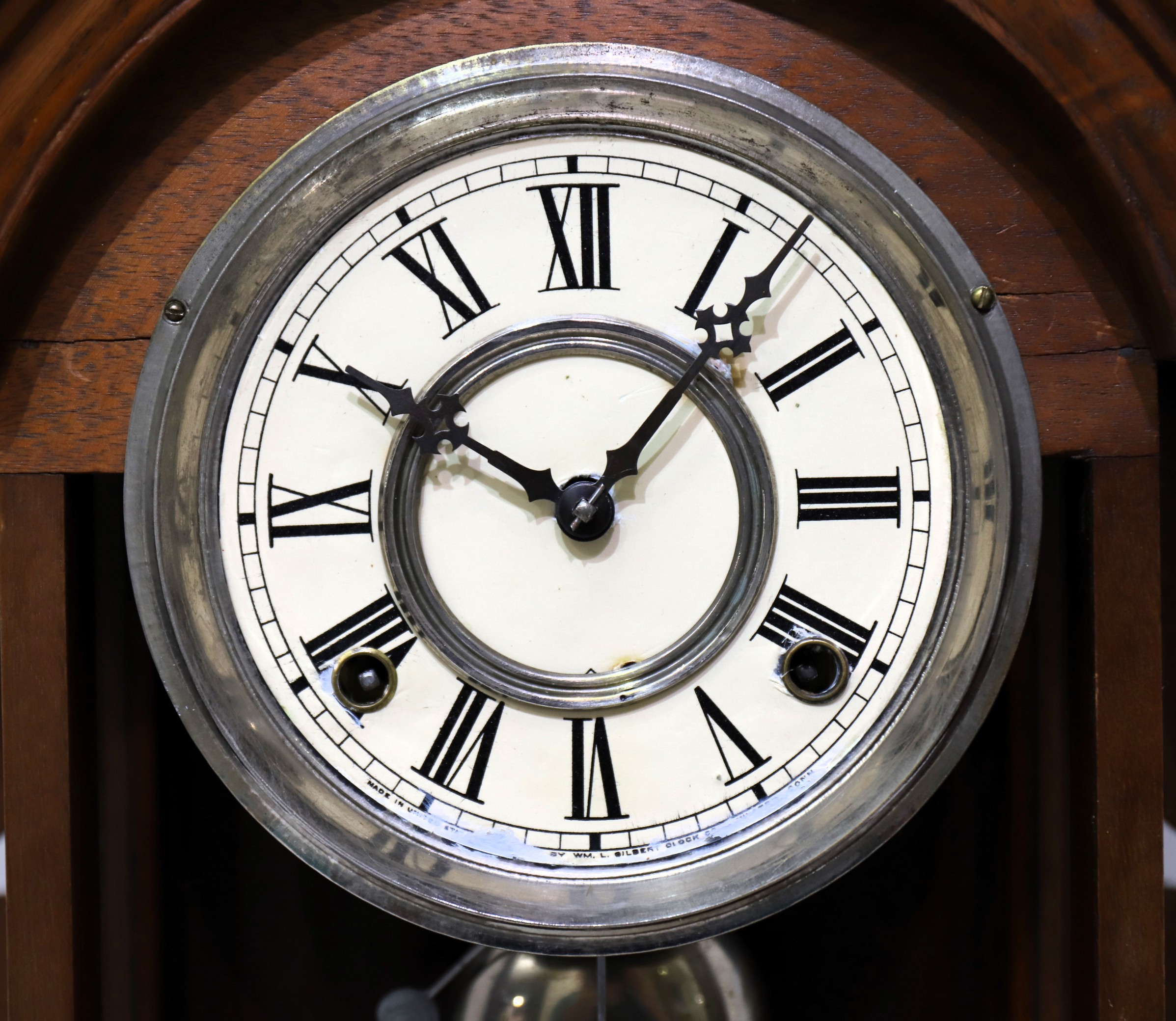 also sold upgraded versions of Gilbert clocks under his own name. This one does not have a label, so we don’t know who marketed