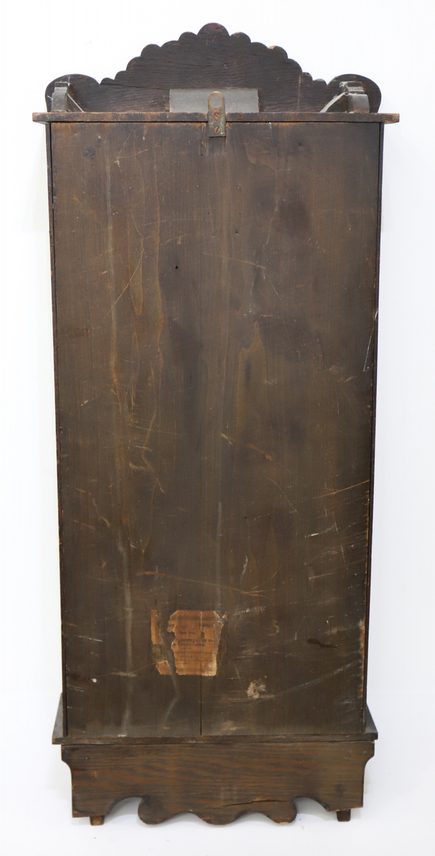1906. A 37-inch case, presumably oak but too dark to tell, with the original finish and then some. Both glasses are period