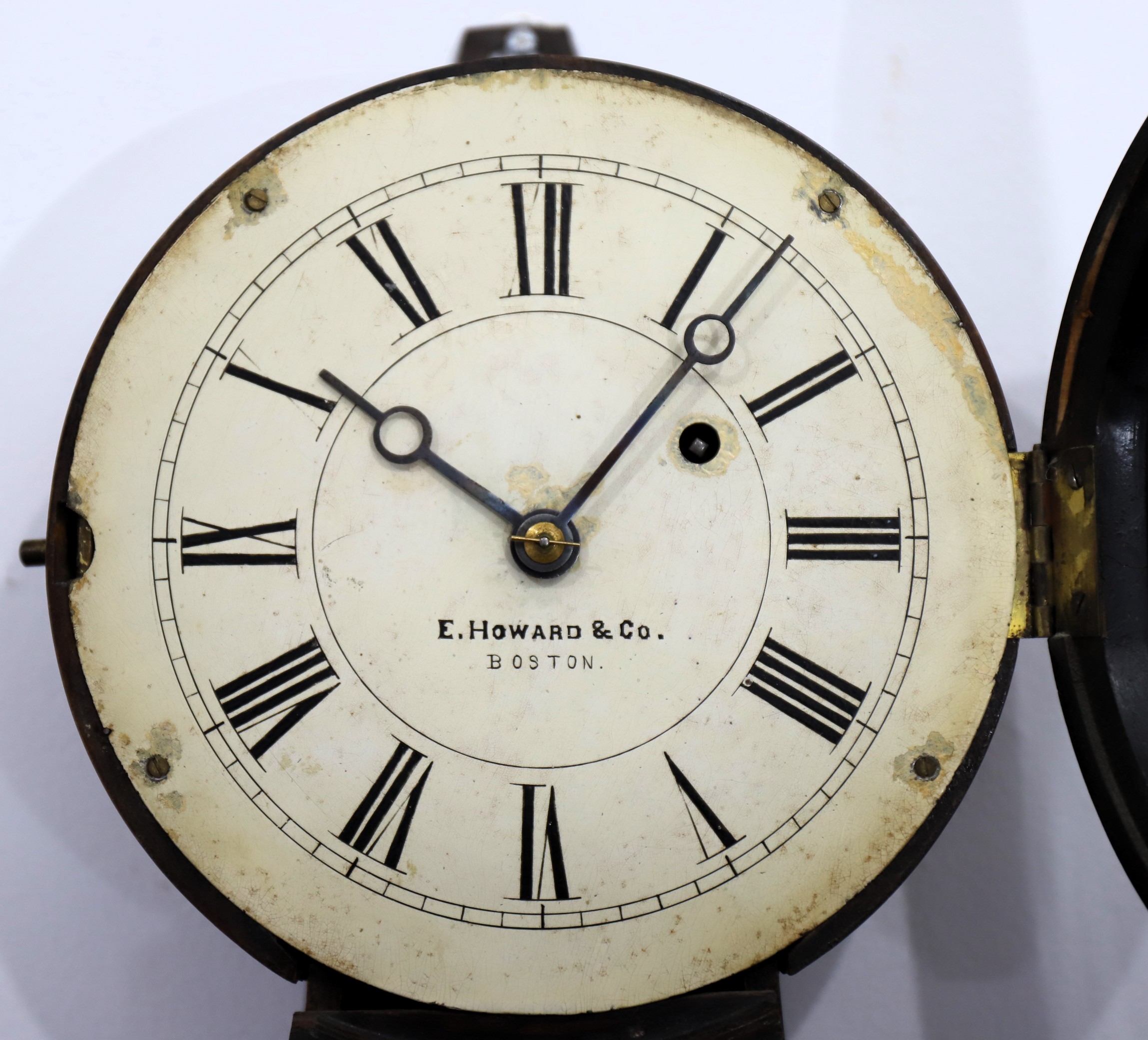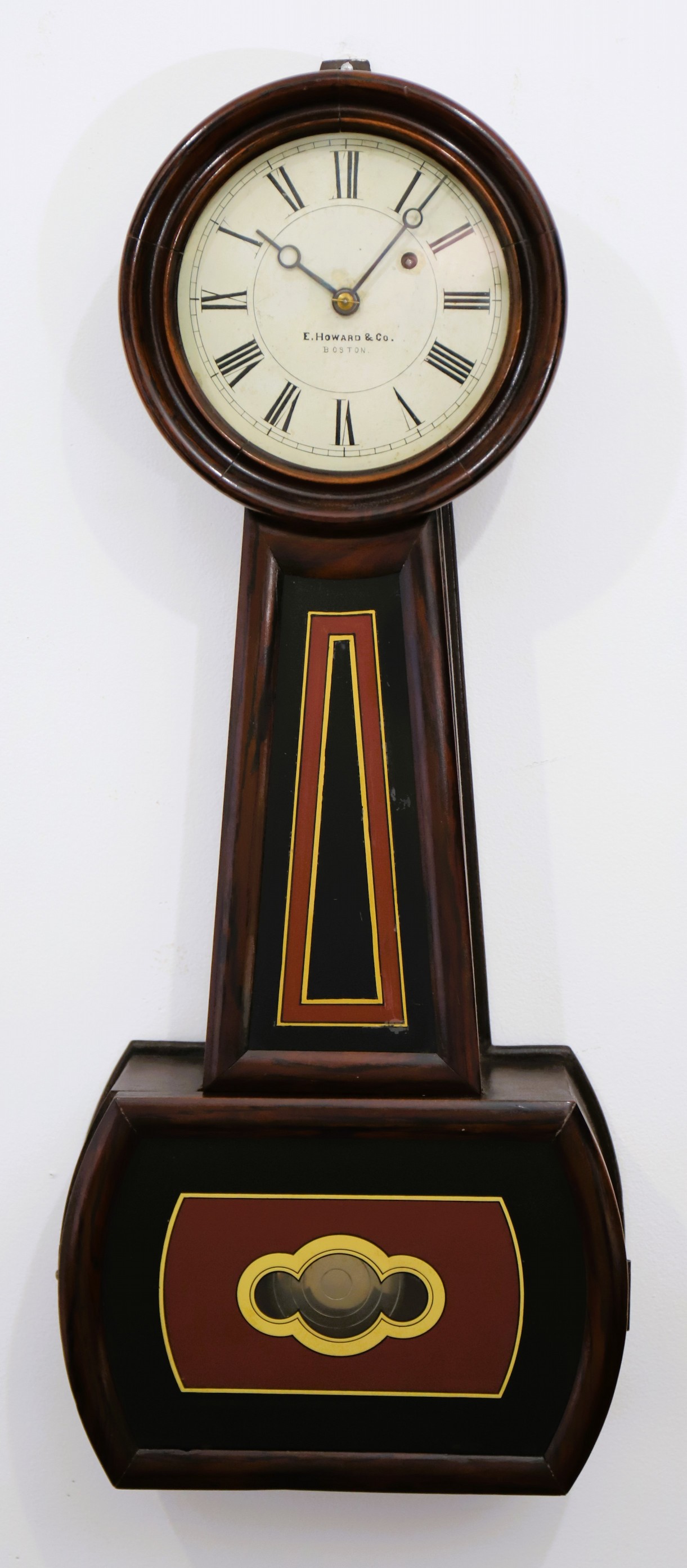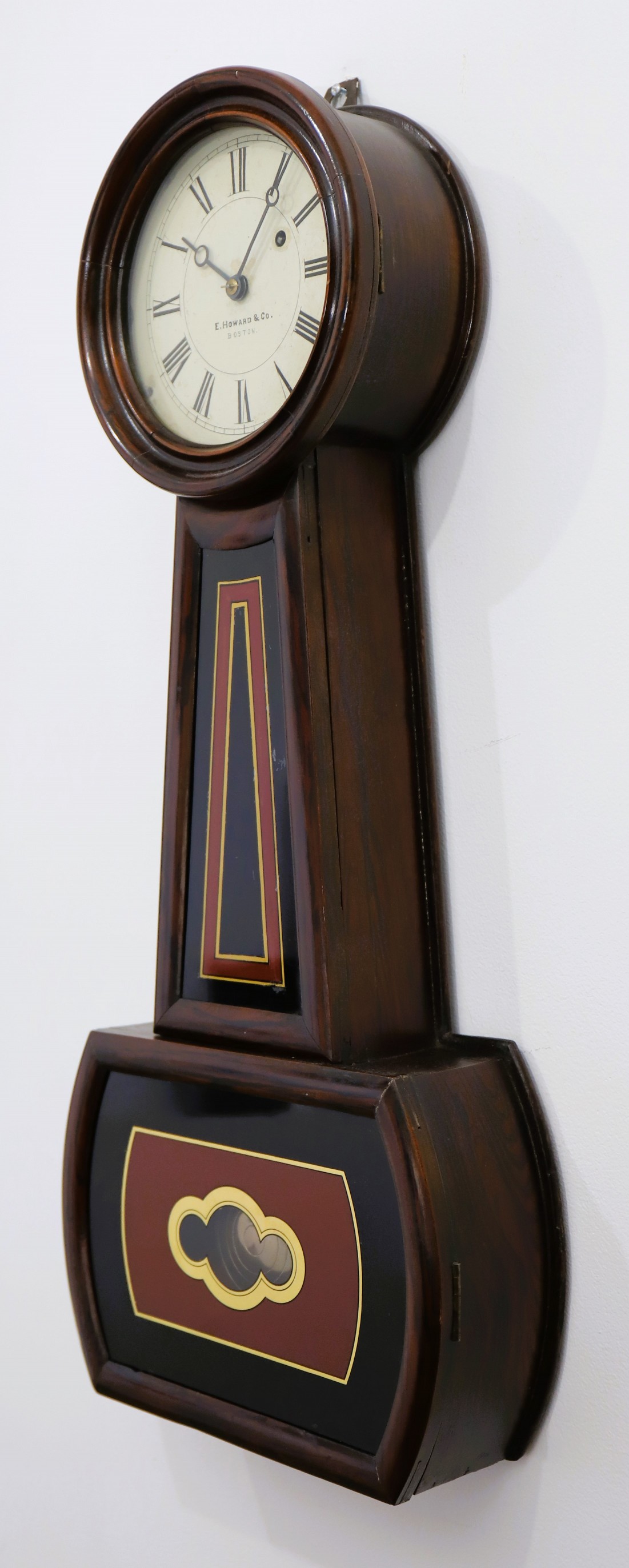 E. Howard & Co. “No. 5 Regulator” (banjo),ca. 1874. A second example of this iconic wall clock. The finish is clear and the rosewood graining is evident on all