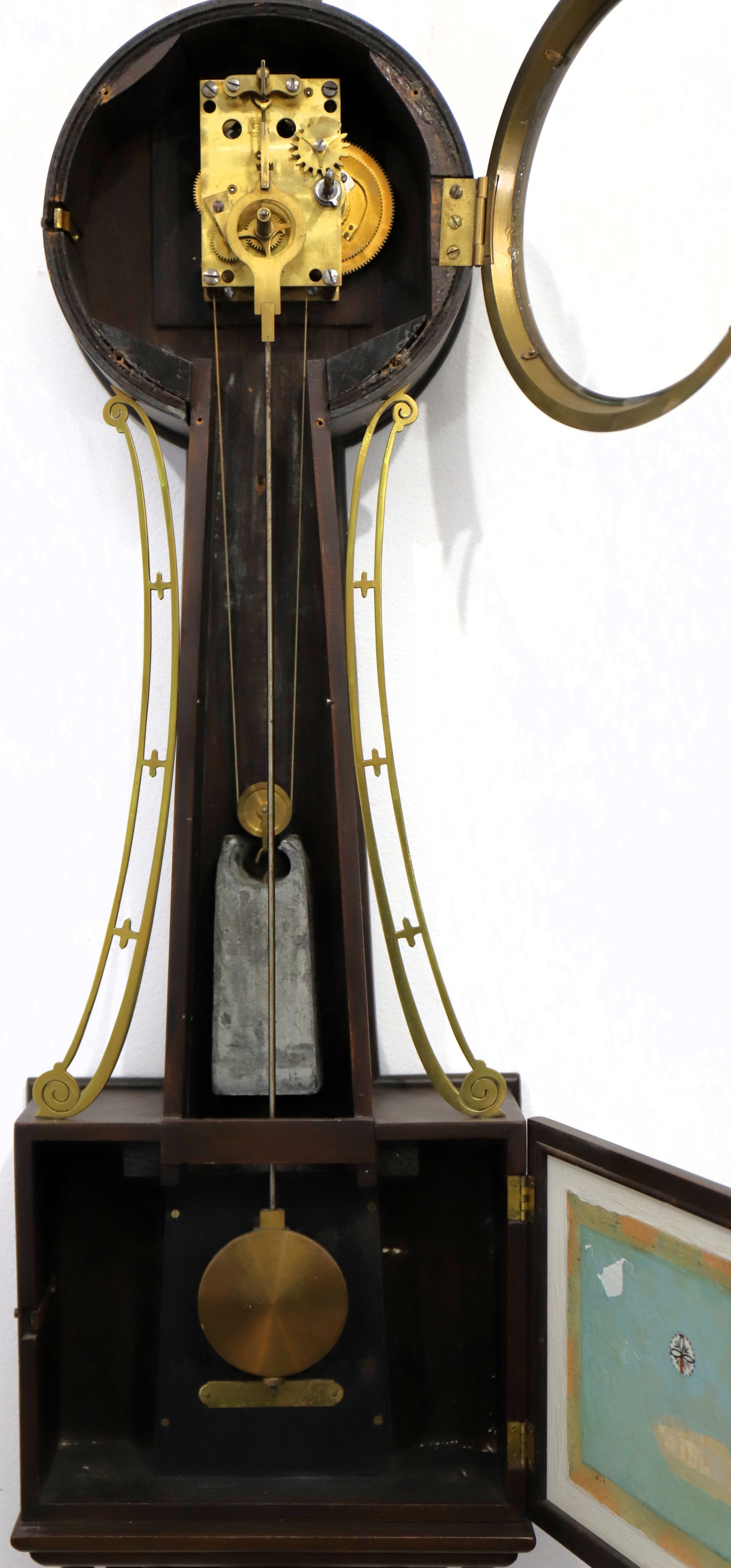 flake on the original tablet. The dial glass is a replacement, convex, over a painted dial with some flaking and light soiling. The signed movement, serial number 7567, is running without problem, driven by a lead weight. The most recent sales match that
