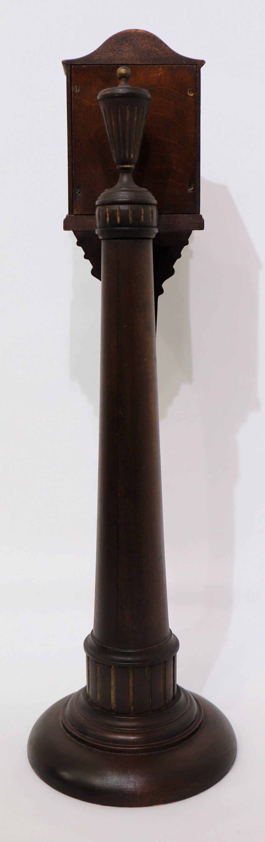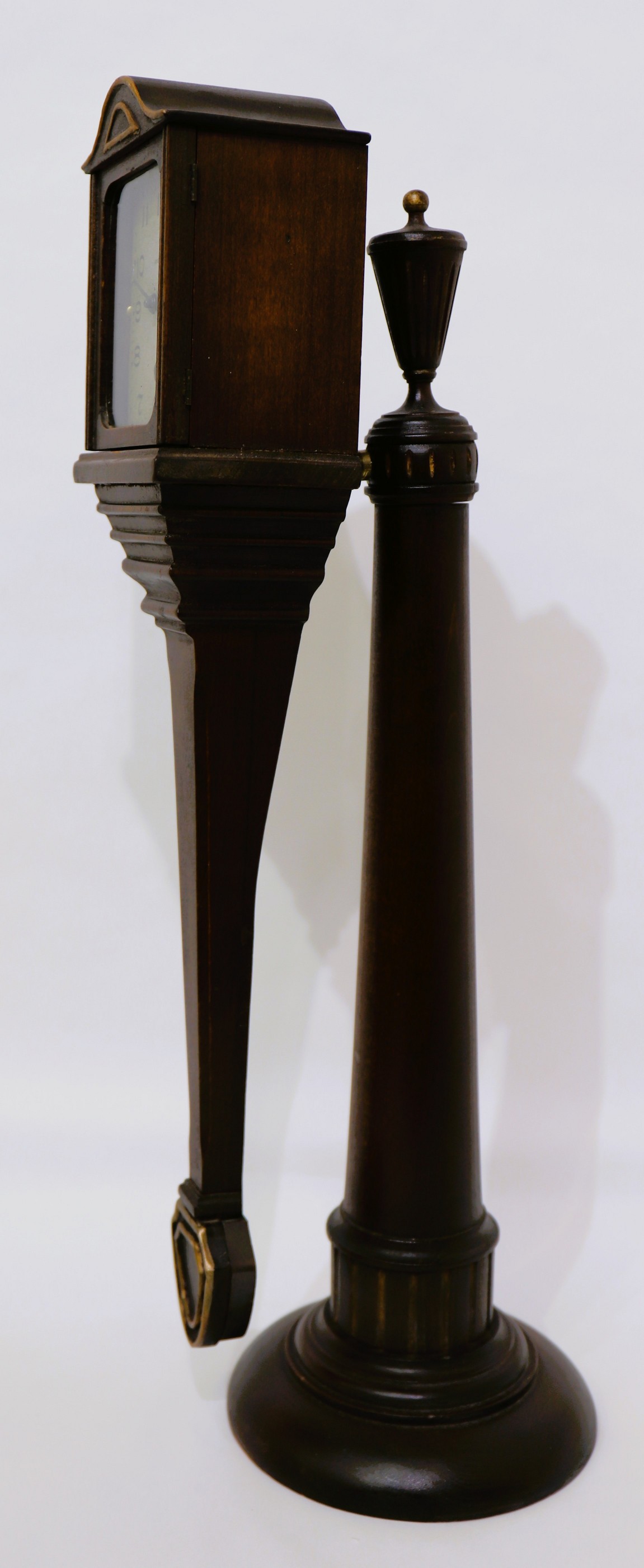 clock on the stand. The 8-day, time-only movement is signed and running. Makes me dizzy to watch it. Schmitt Horan