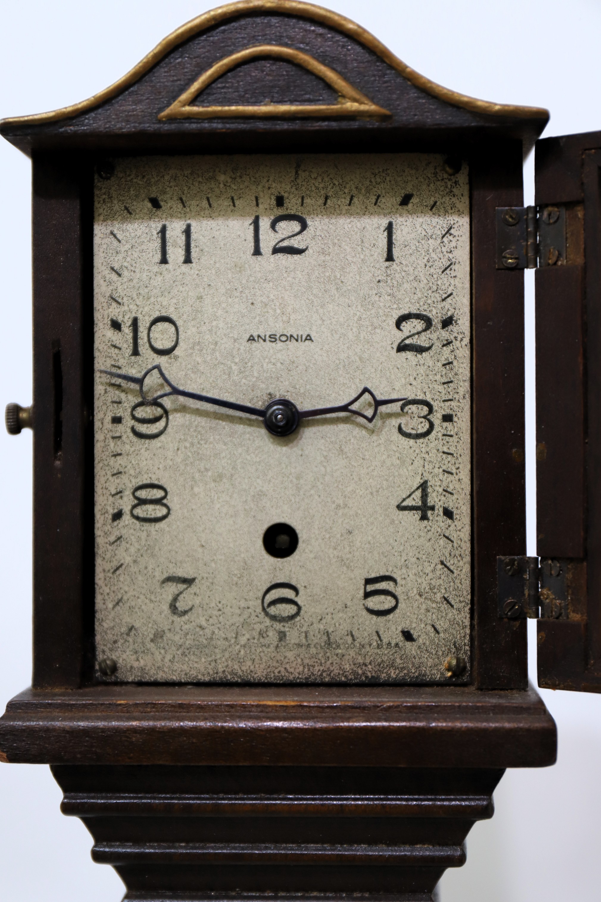 No. 1”, ca. 1923. A 23-inch-tall clock, one of three that Ansonia marketed in the 1920’s. The wood is mahogany with a