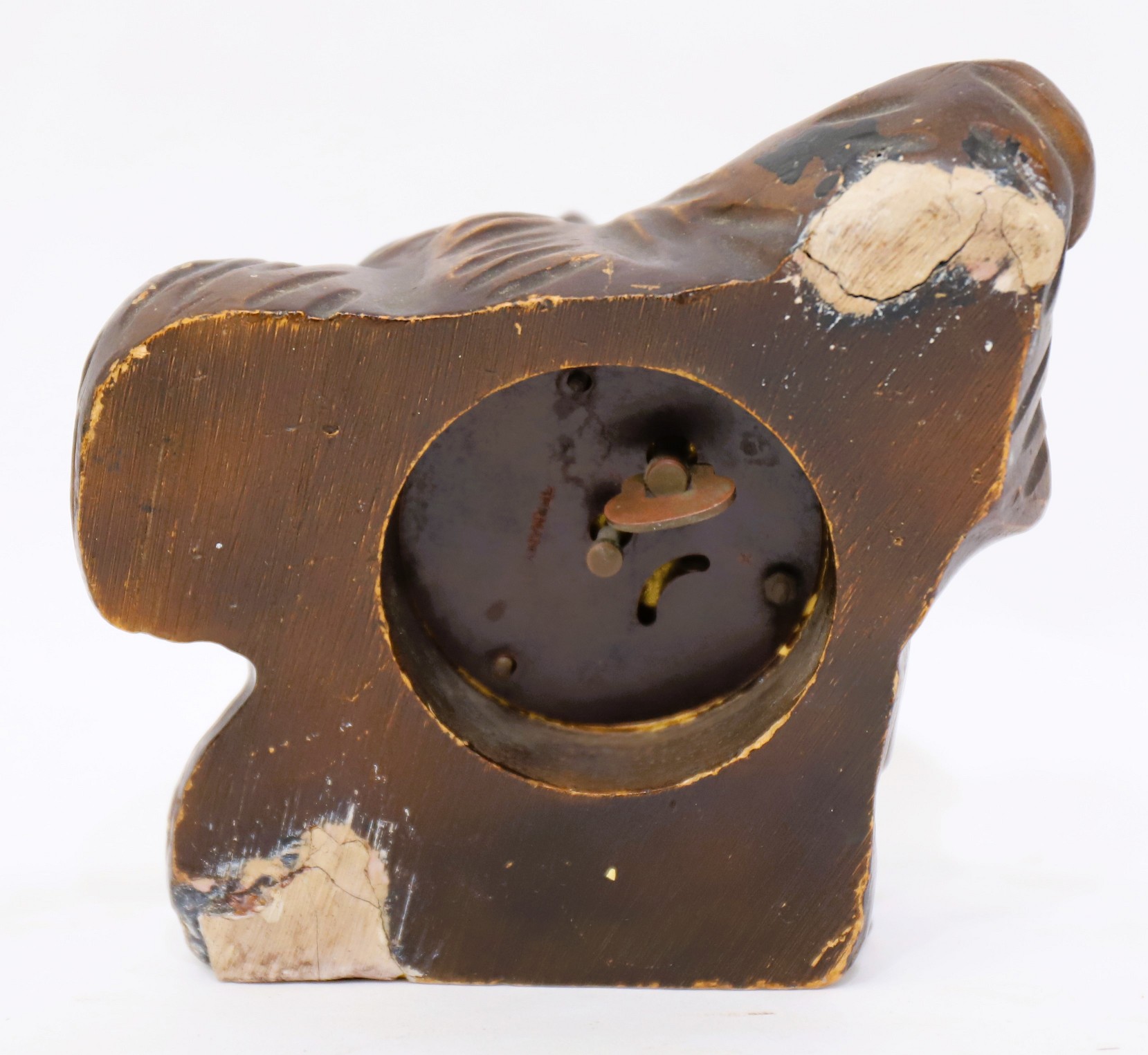 up, with some poor chip repairs, including on the left eyebrow and the nose. The metal plate over the 1-day backwind movement