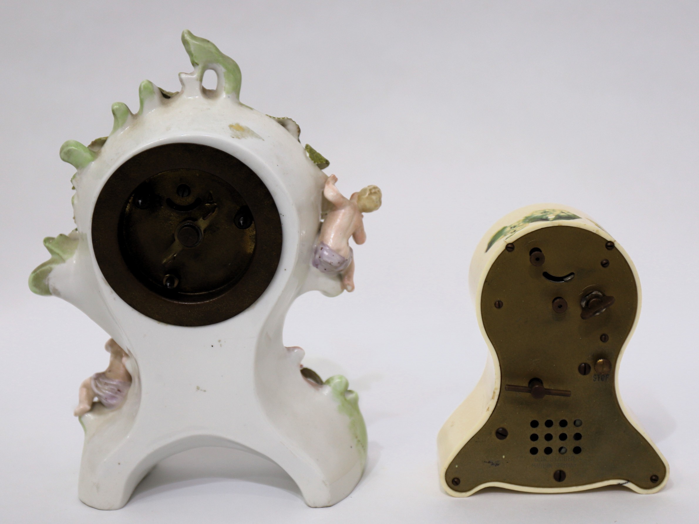 has a music box alarm in the bottom and the case is plastic. All four are running, the hands set, and the music box plays. All for one money. $10–$50.