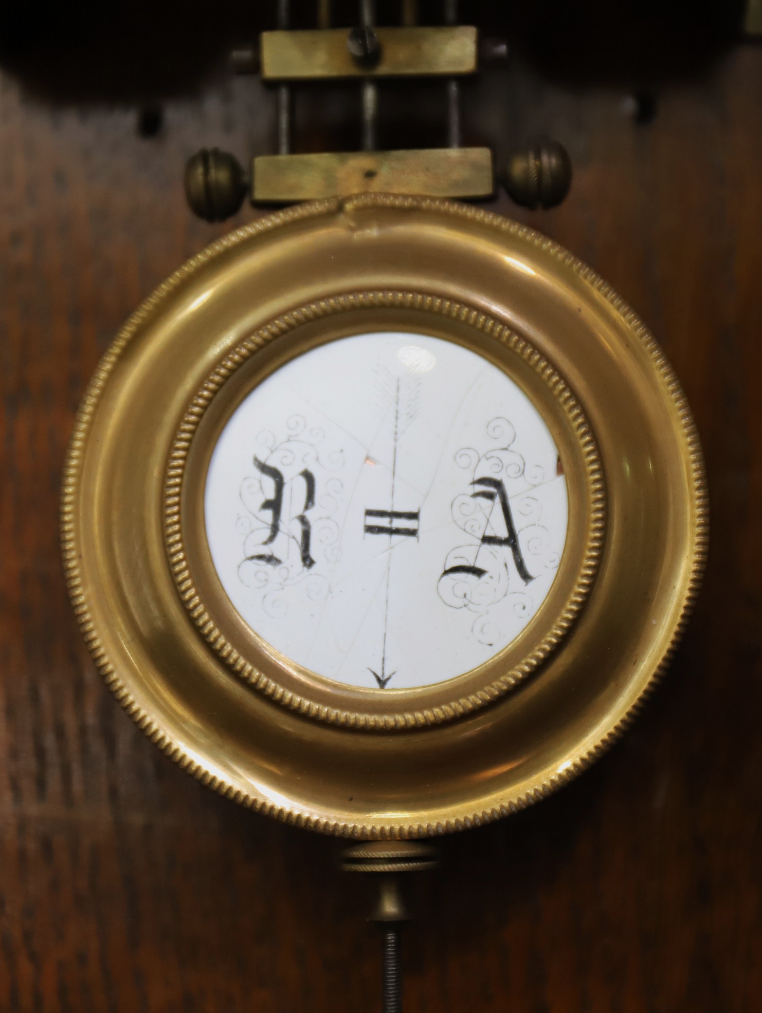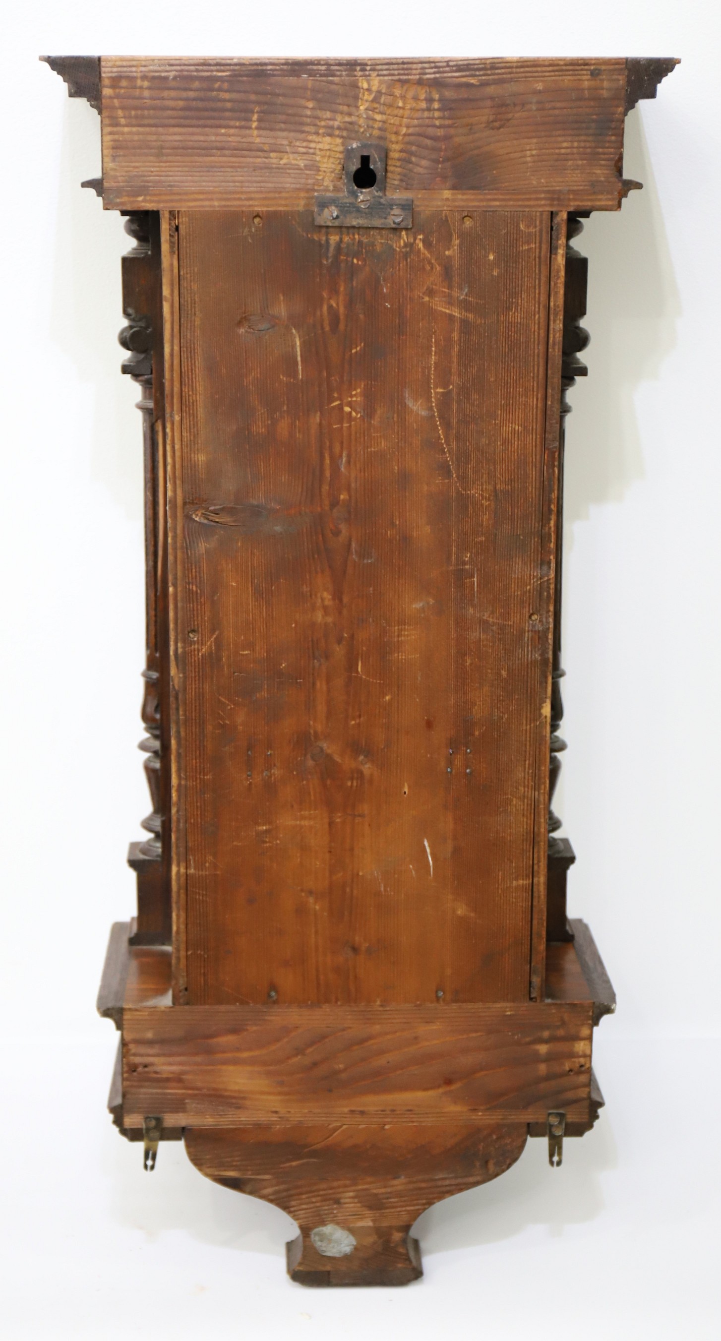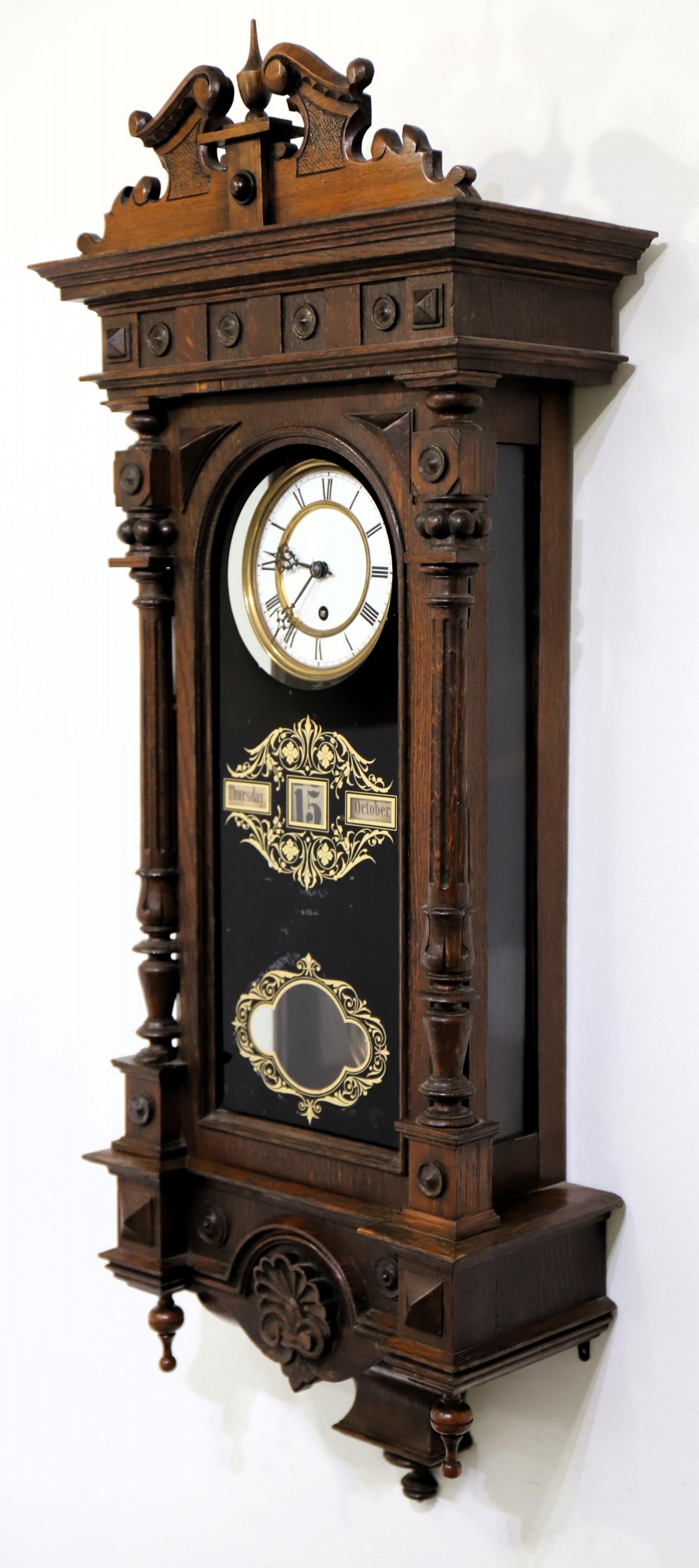 German/Austrian Vienna calendar wall clock, ca. 1900? I can find no indication of the maker of the unusual spring-driven Vienna with a calendar mechanism. The clock is 38 inches