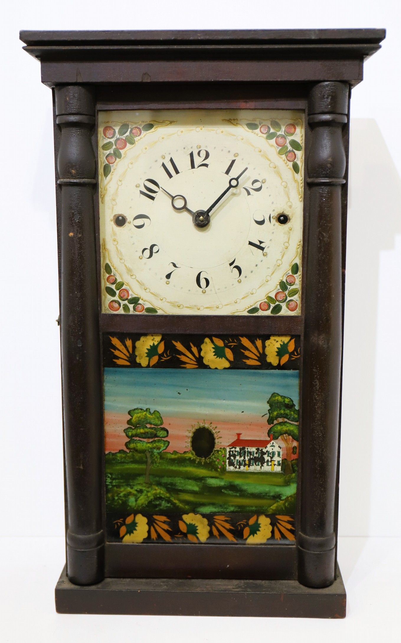 worked with Norris North from 1828 and took over the business in 1831. Most of his clocks are narrow-case pillar & scrolls;