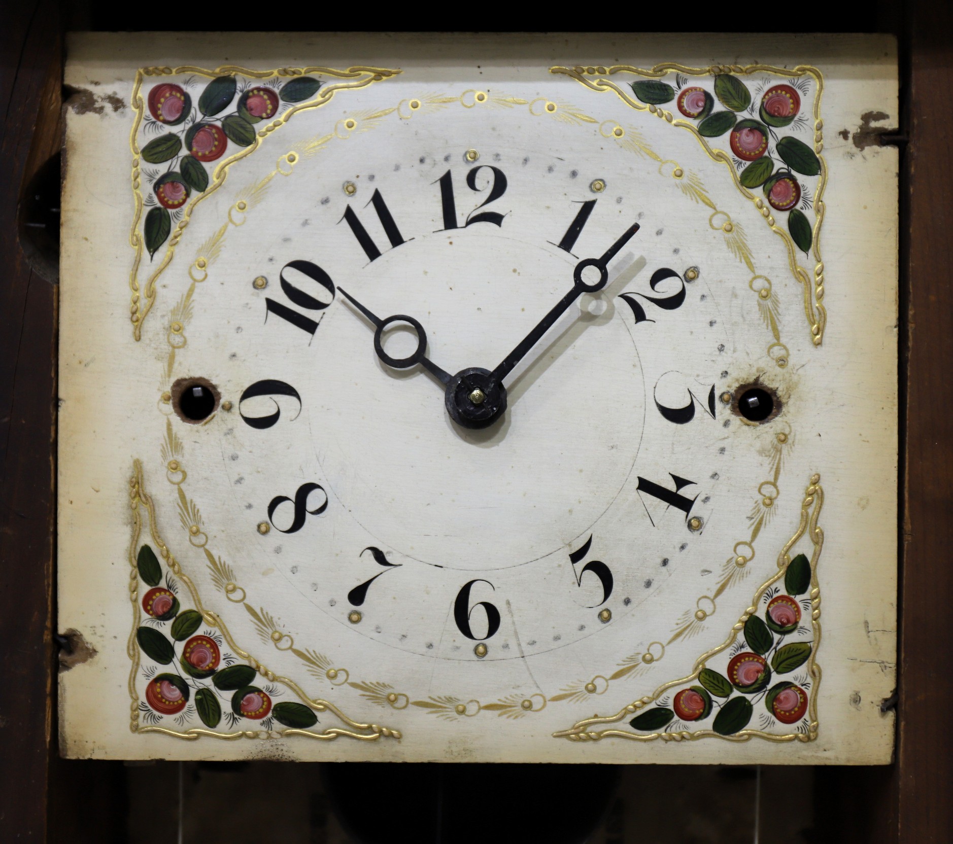 clean and likely original; the hour hand is likely original, the minute hand an acceptable replacement. The 30-hour wooden ‘Torrington’