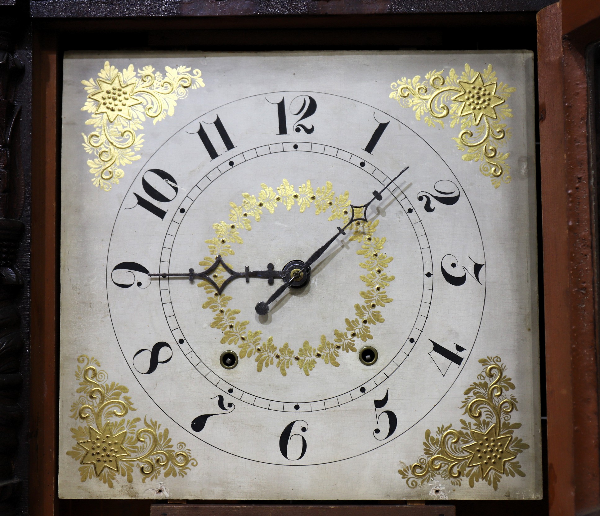 cleaning would make a big difference. There are number of repair notations on the back. The 30-hour time-and-strike wooden