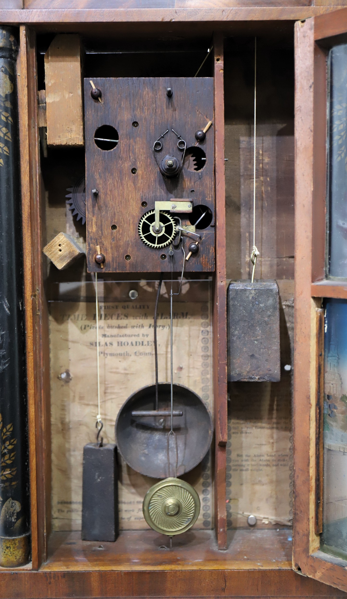 1830. Hoadley is well-known for these miniature timepiece-alarms. This one is 26 inches tall on a pillar &