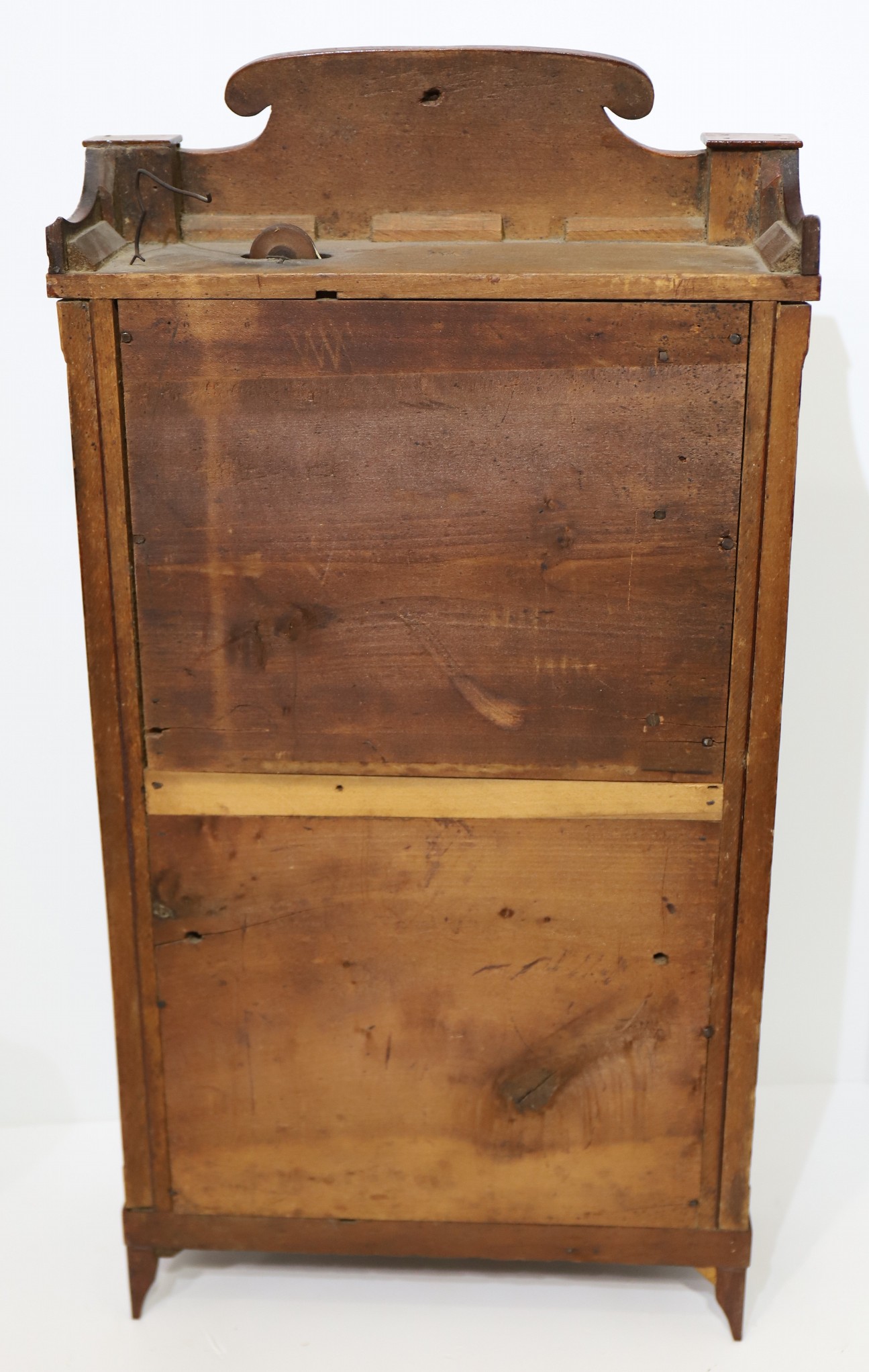 alarm ring. The miniature 30-hour wooden movement will run for a while; the alarm was not tested although a weight is present. These clocks did not have a strike. There is a good label inside. AAC sold an example in better condition in 2023