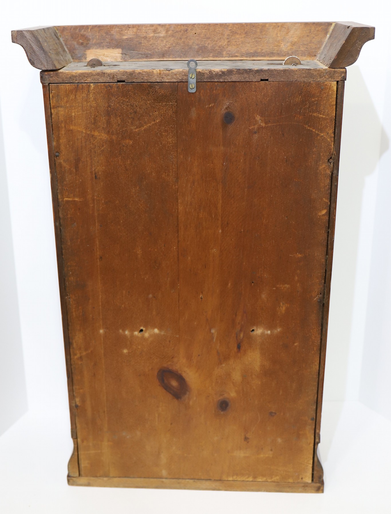 inside. All the evidence suggests that this is a wooden movement clock marketed after 1850, a surprise to me. $50–$150.