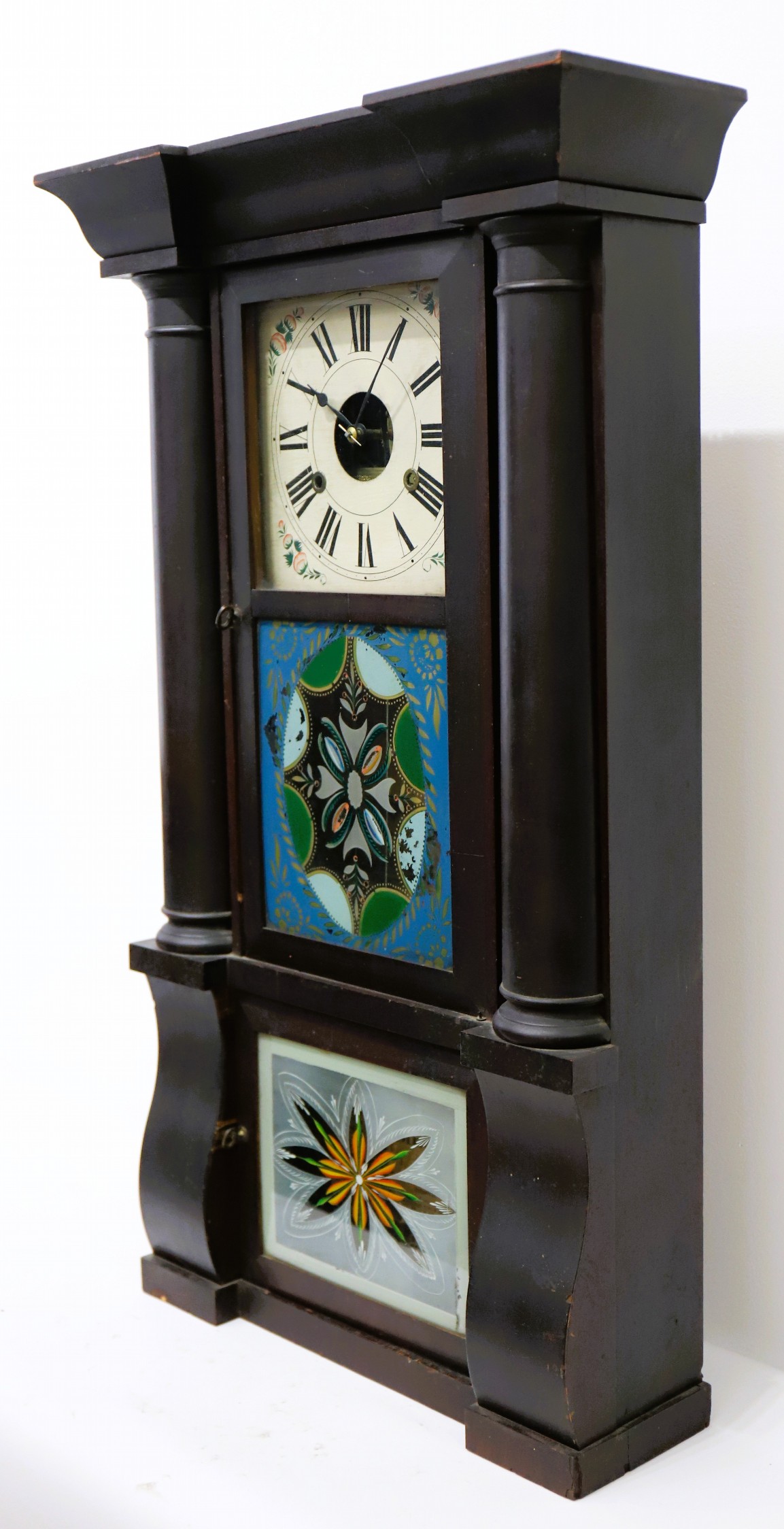 Birge & Fuller Patent Brass Eight Day Clock, 1844-1848. An untouched sleigh-front triple-decker clock, 32.5 inches tall with what must be the original finish and 180 years of accumulated
