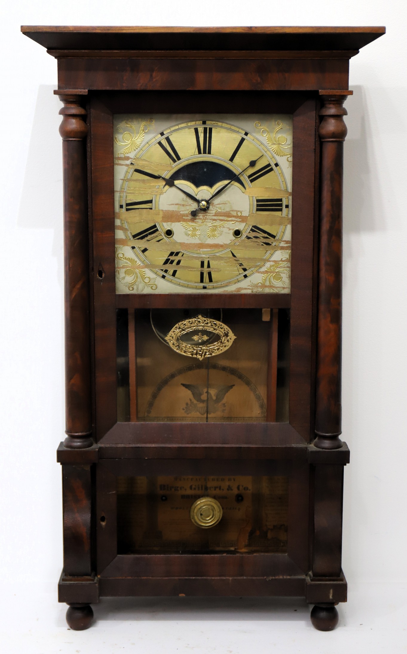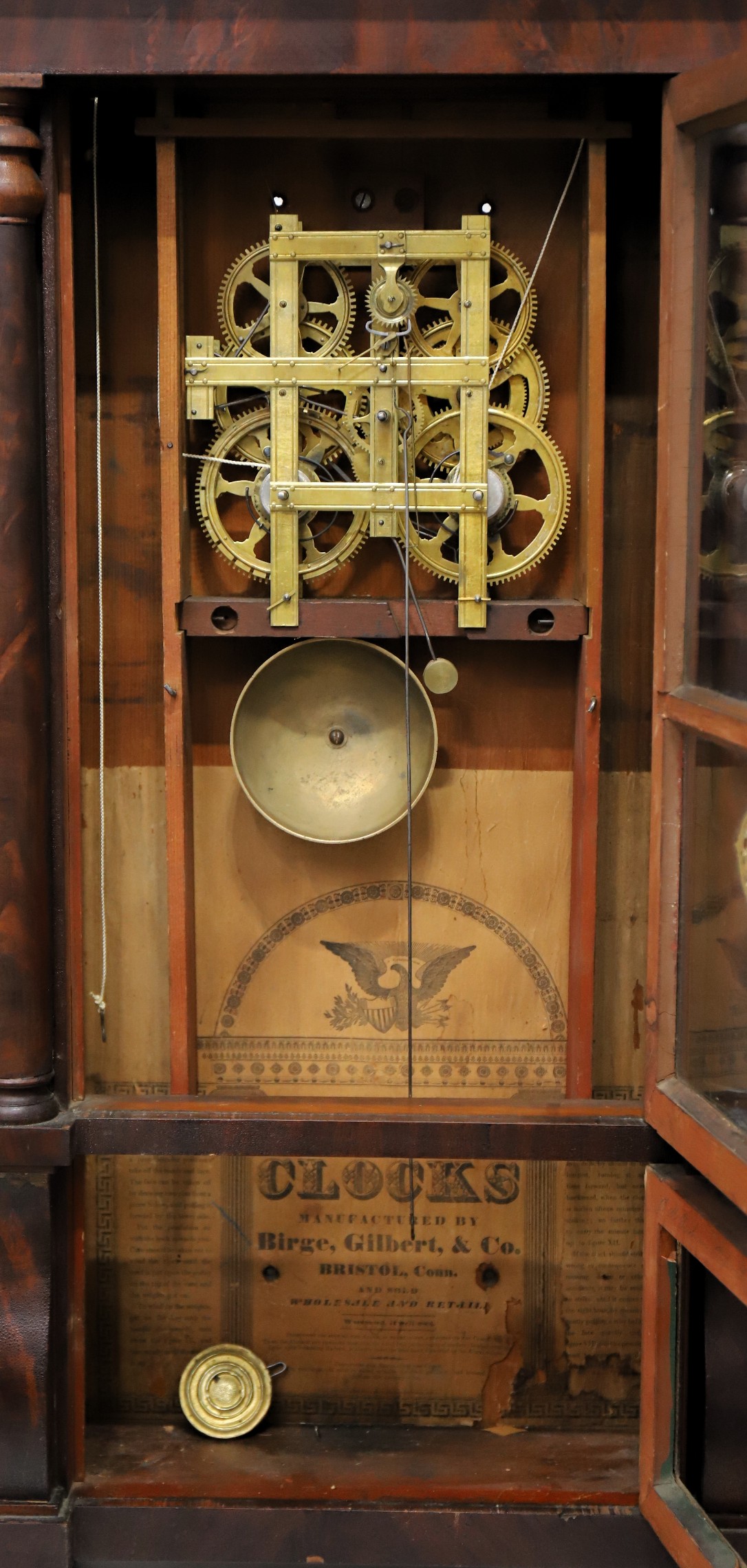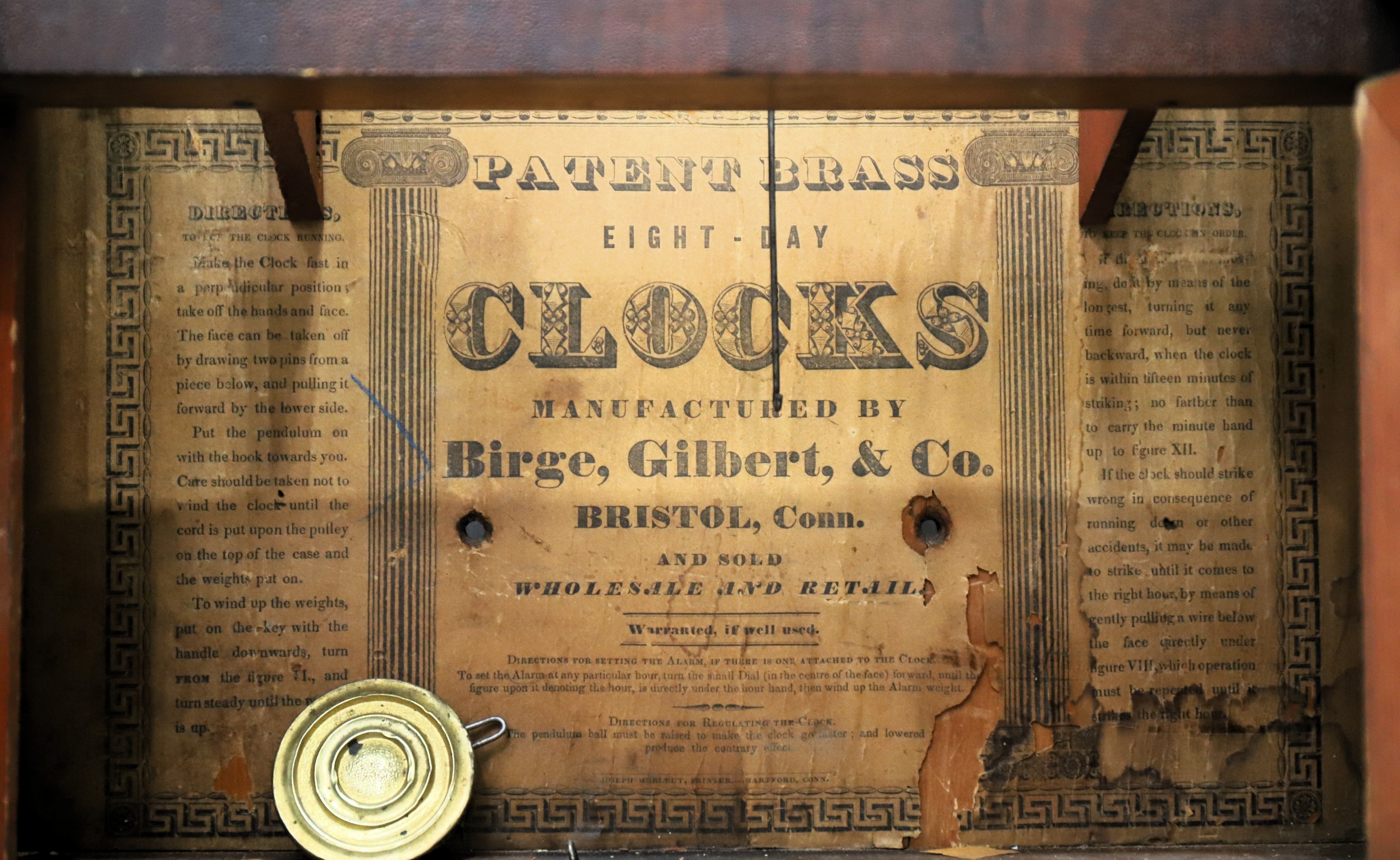 Co. Patent Brass Eight Day Clock, 1834-1837. John Birge must be the most promiscuous clockmaker of his time, having arrangements