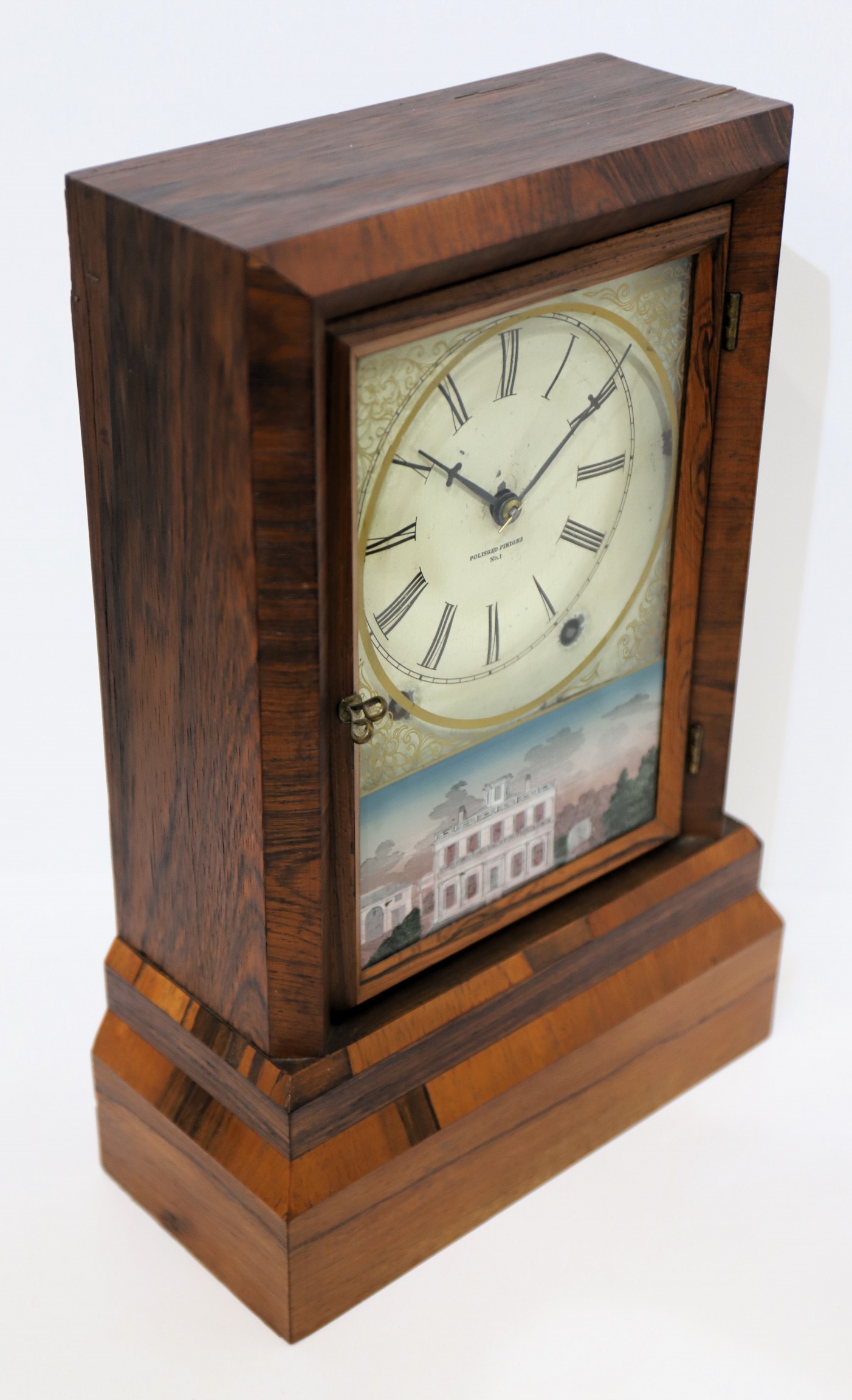 label. Miles Morse married Seth Thomas’ granddaughter Laura in 1871 at the age of 55; she was 39. Another nice example. $200–$400.