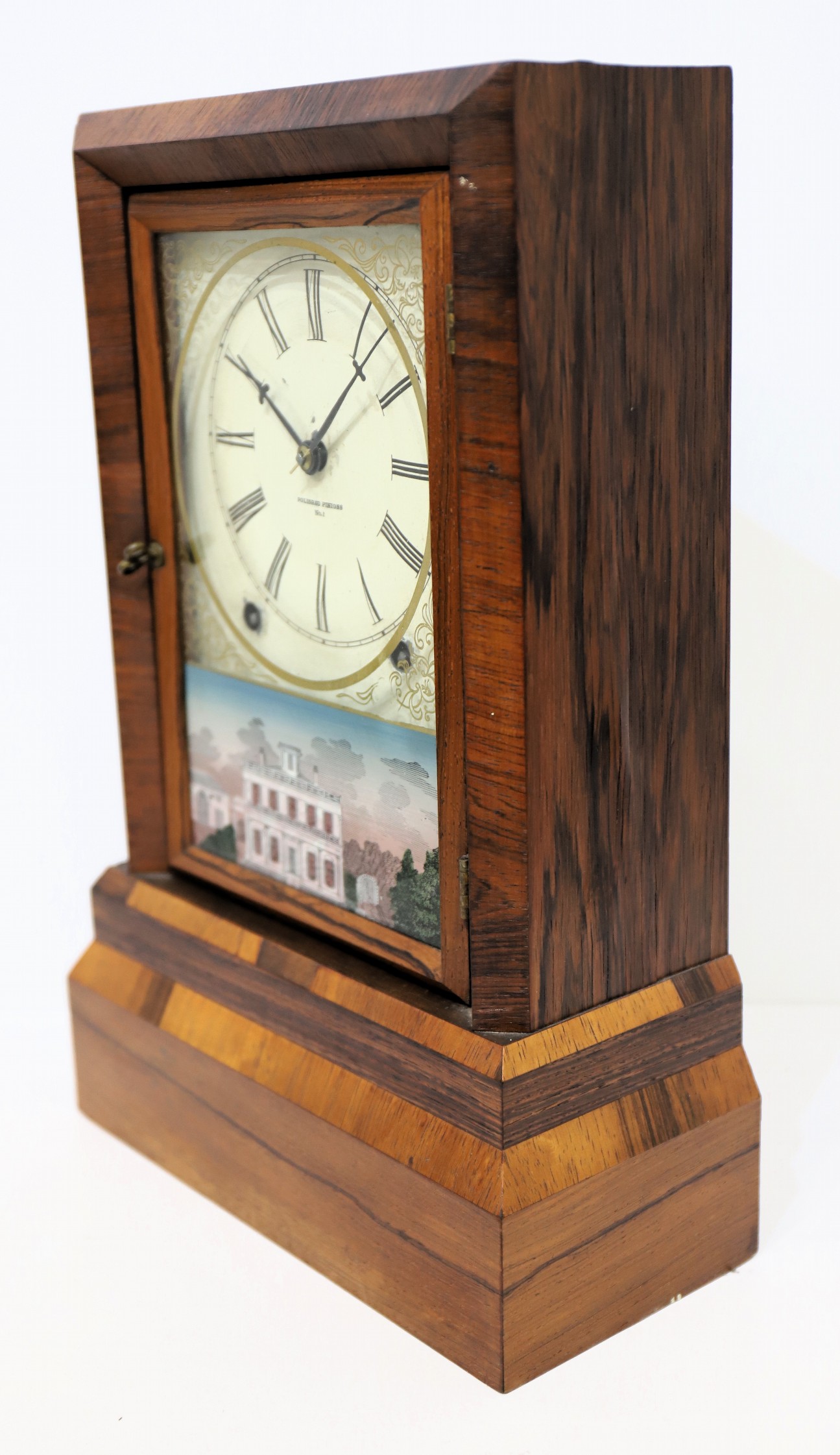 made by Forestville Mfg. Co. under Brown, as it closely resembles JC Brown cottage clocks. The 15.25-inch case has good rosewood