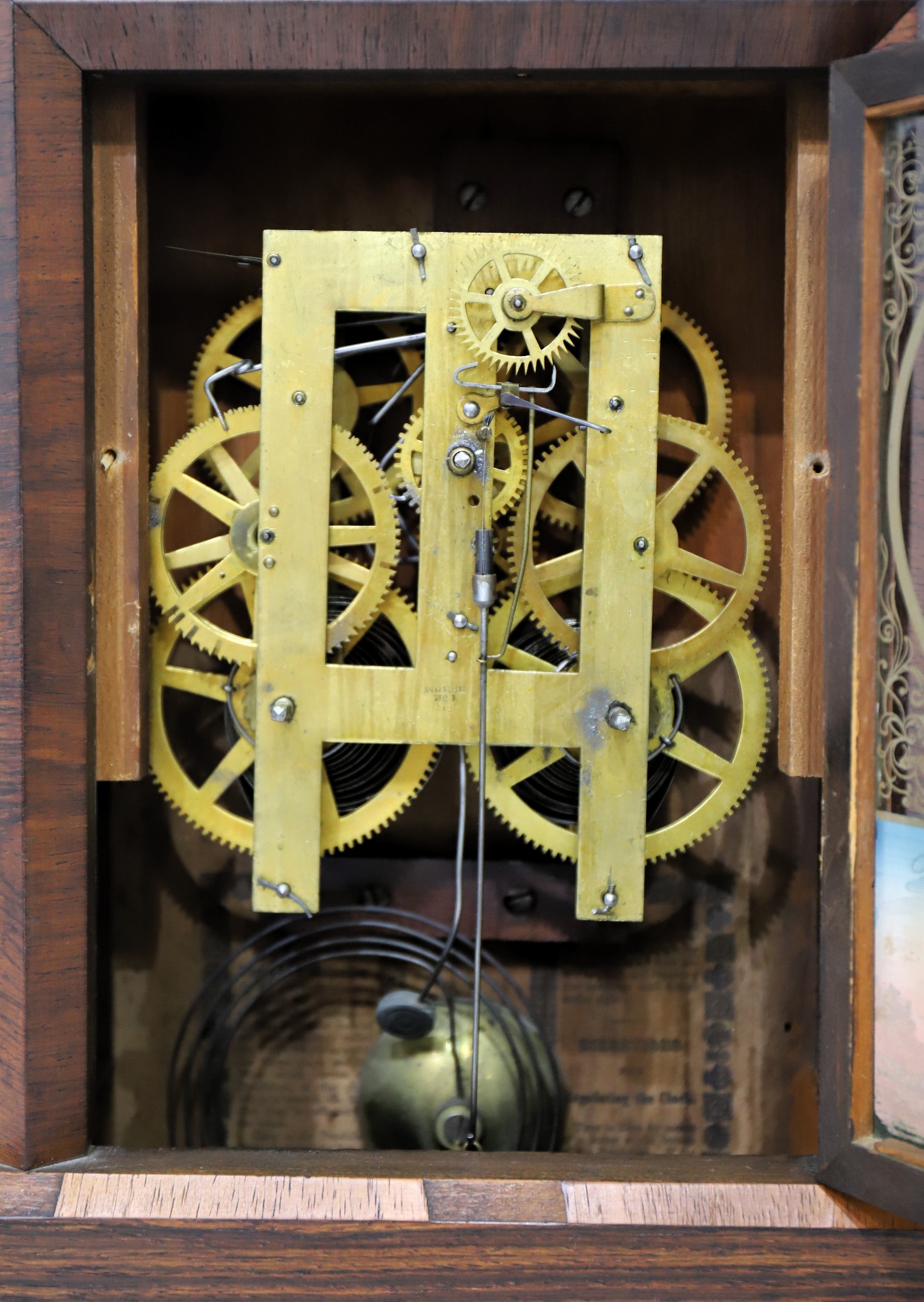 lithograph tablet and gilt dial surround. I can’t identify the source lithograph. The dial has old paint with “Polished
