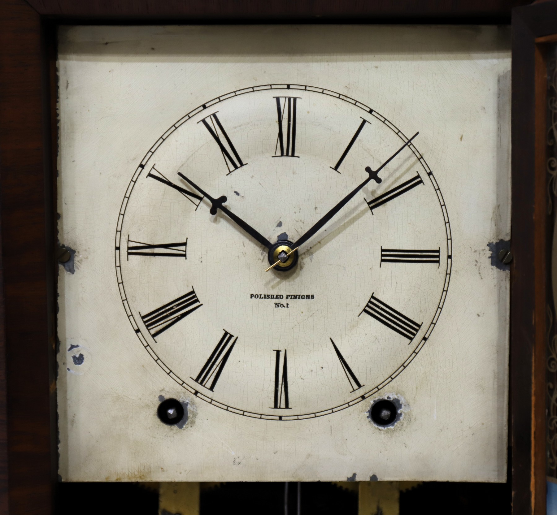– one of his movements was found in a JC Brown clock very similar to this one, suggesting that he may have traded movements for cases. Although not common, most Morse & Co. clocks are OGs made in partnership with Thomas Davies. This clock case may have been
