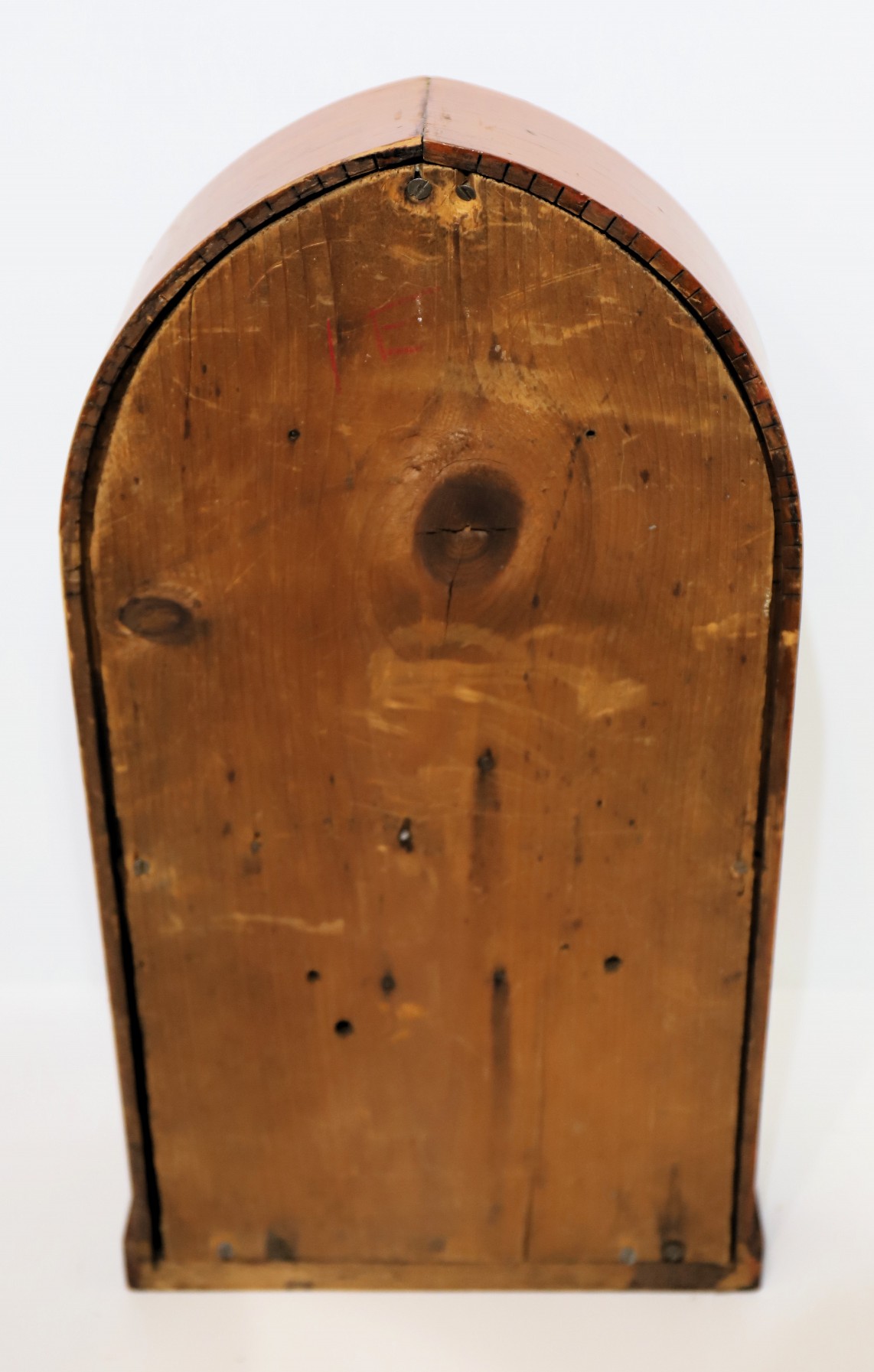 oak. The dial glass is original, the lower glass a modern replacement with a proper period tablet. The contoured metal