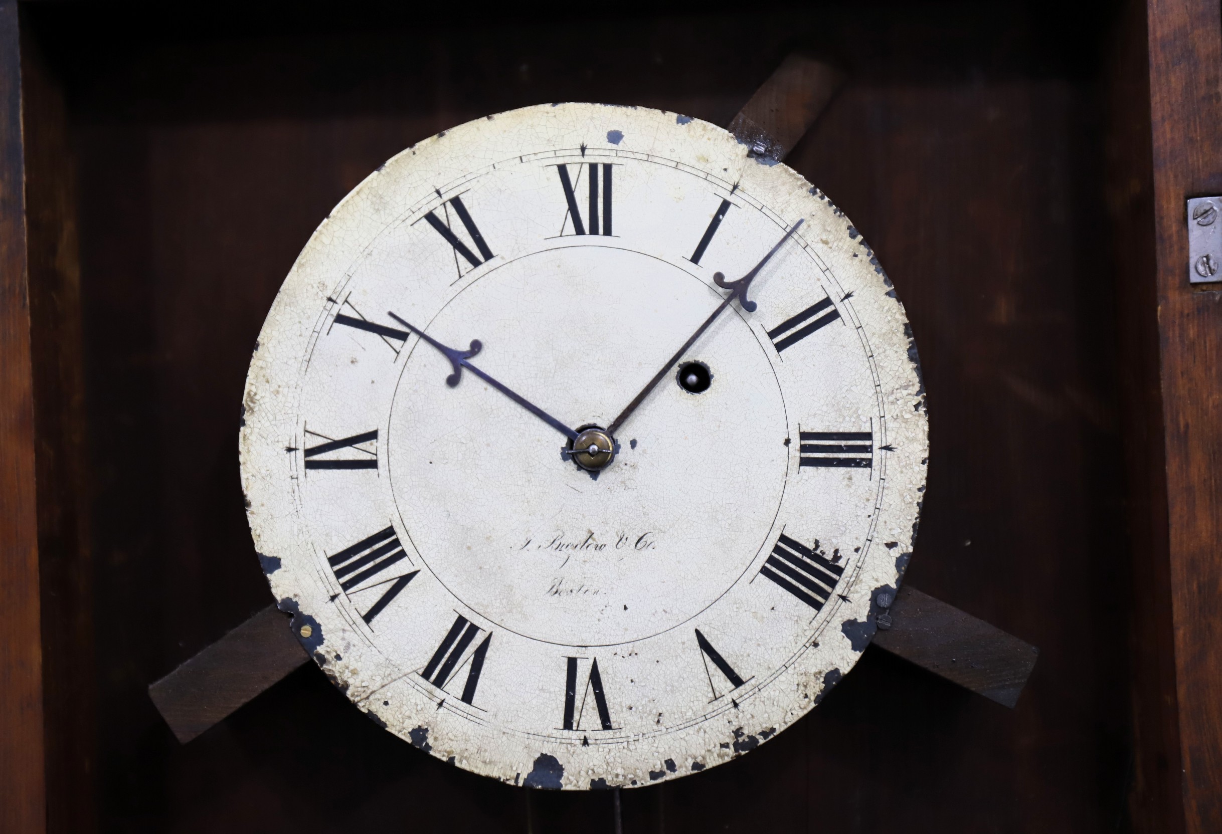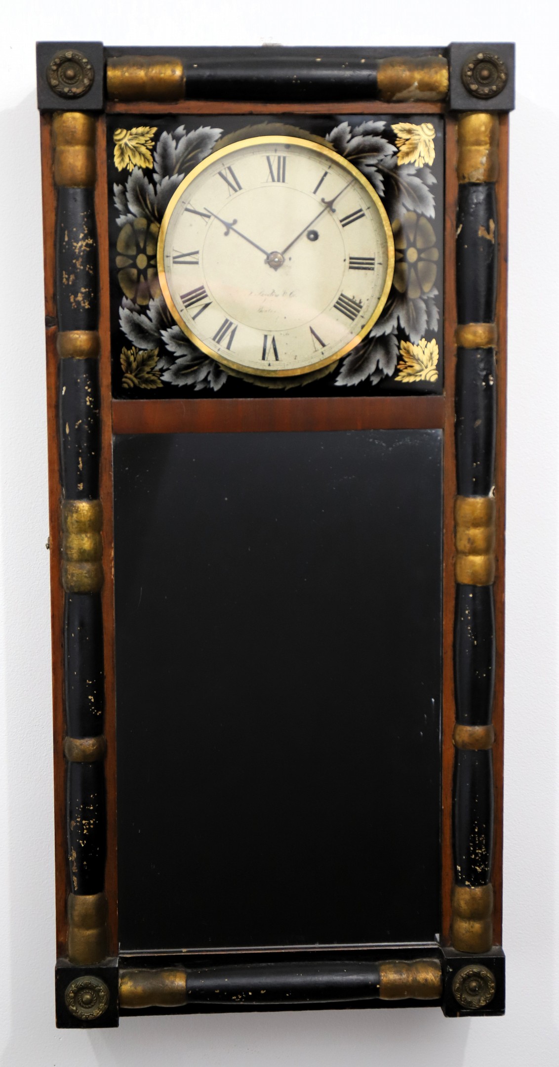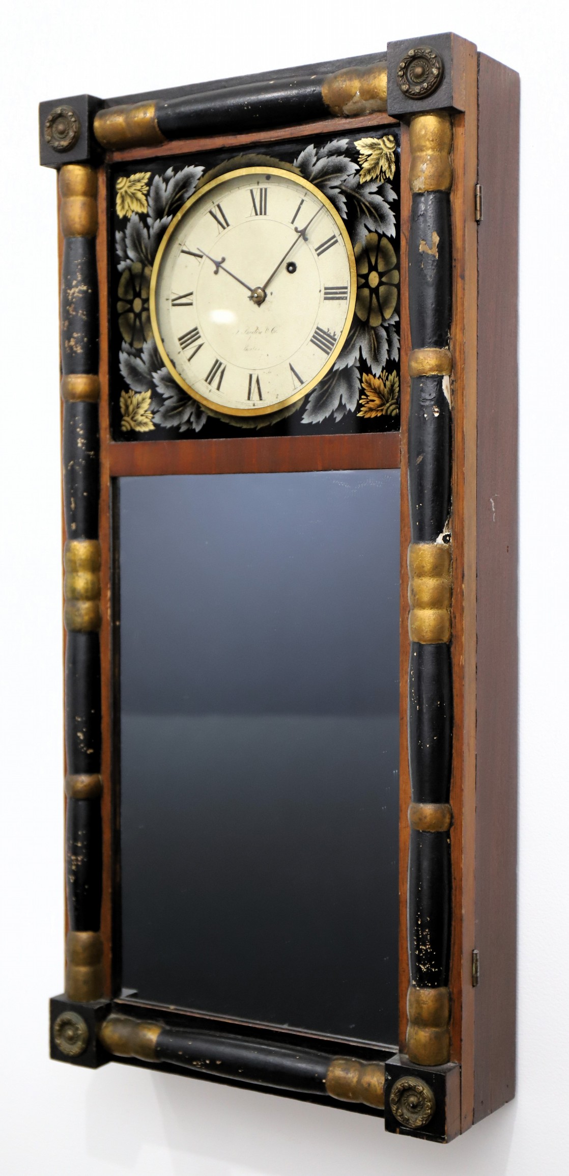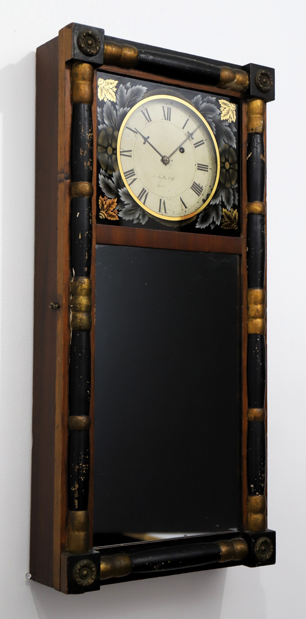 J Bigelow & Co. New England mirror clock, ca. 1830. John Bigelow was a silversmith and retailer in Boston from about 1824 to the early 1830’s, when his brothers joined him and they went