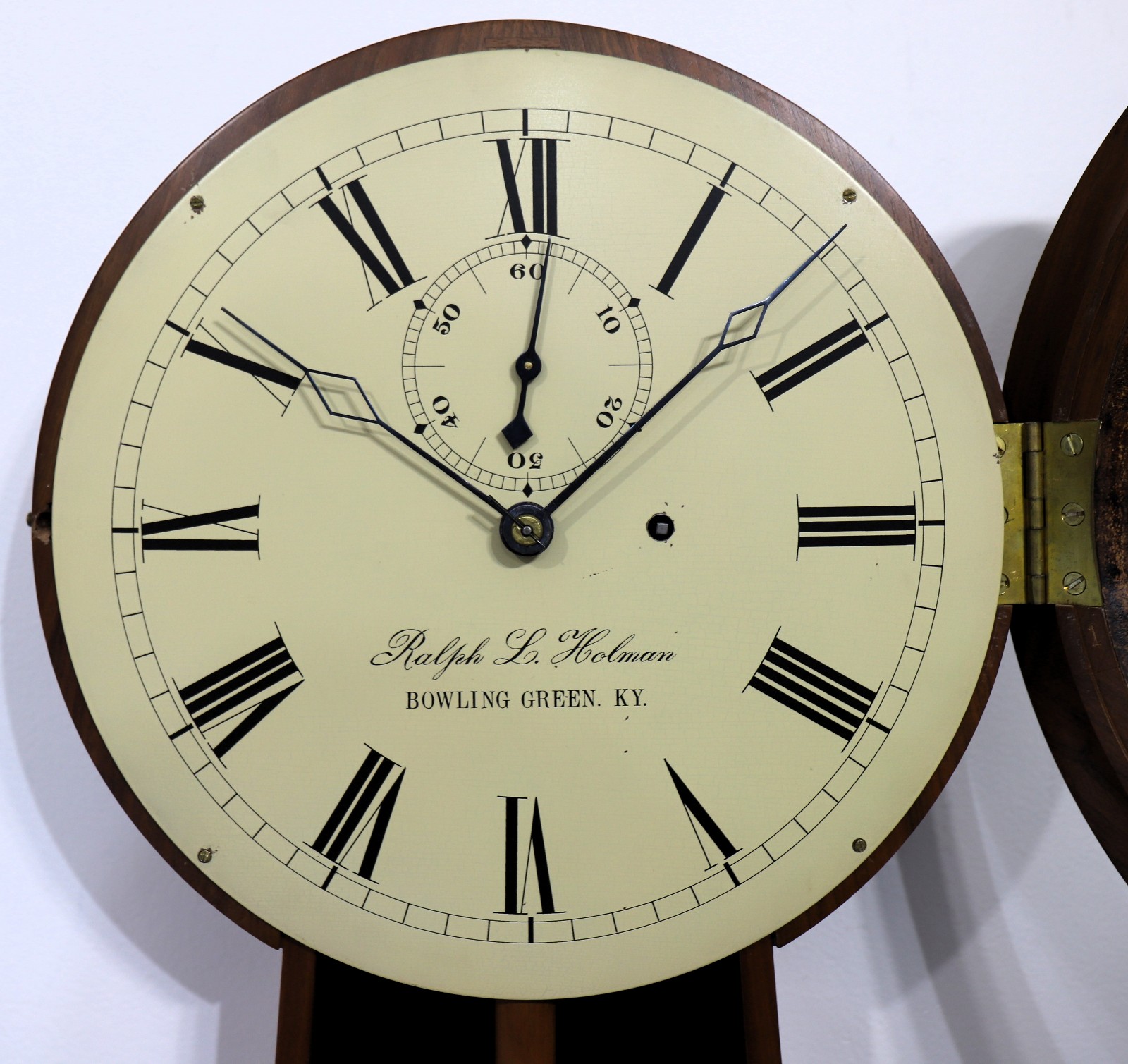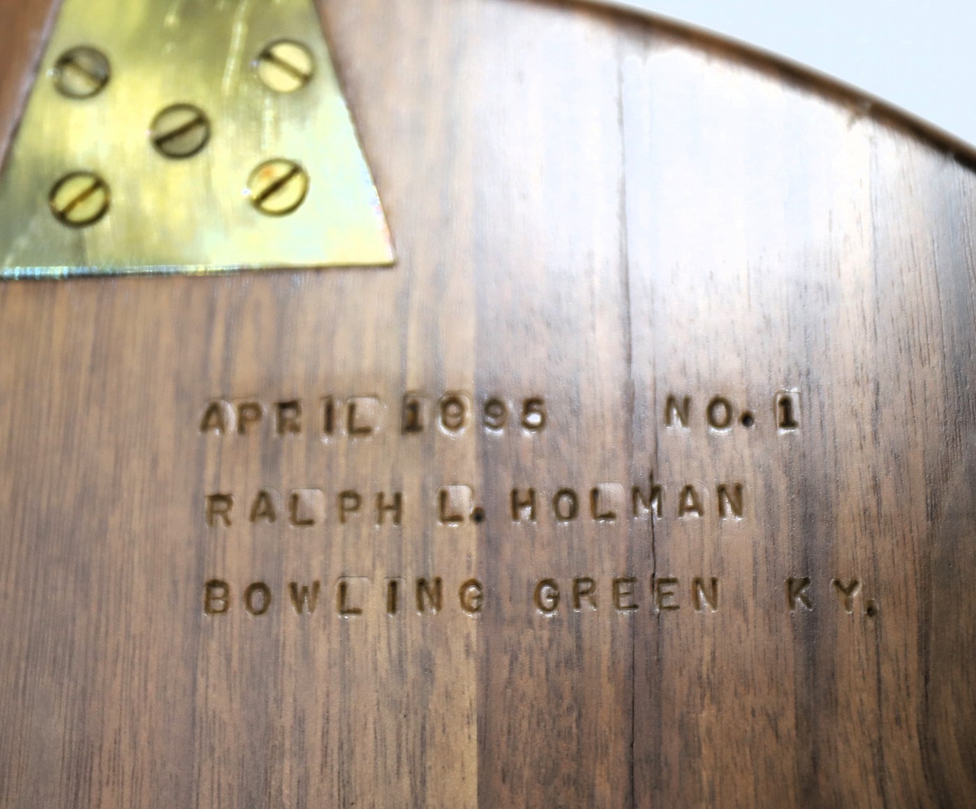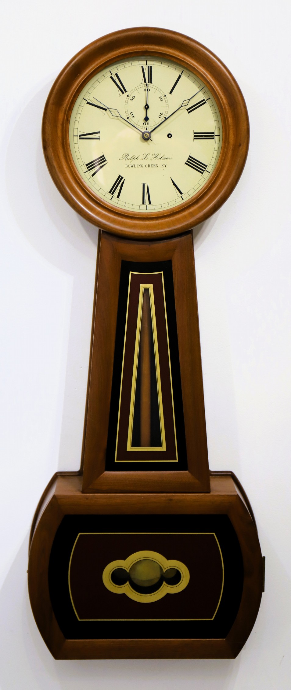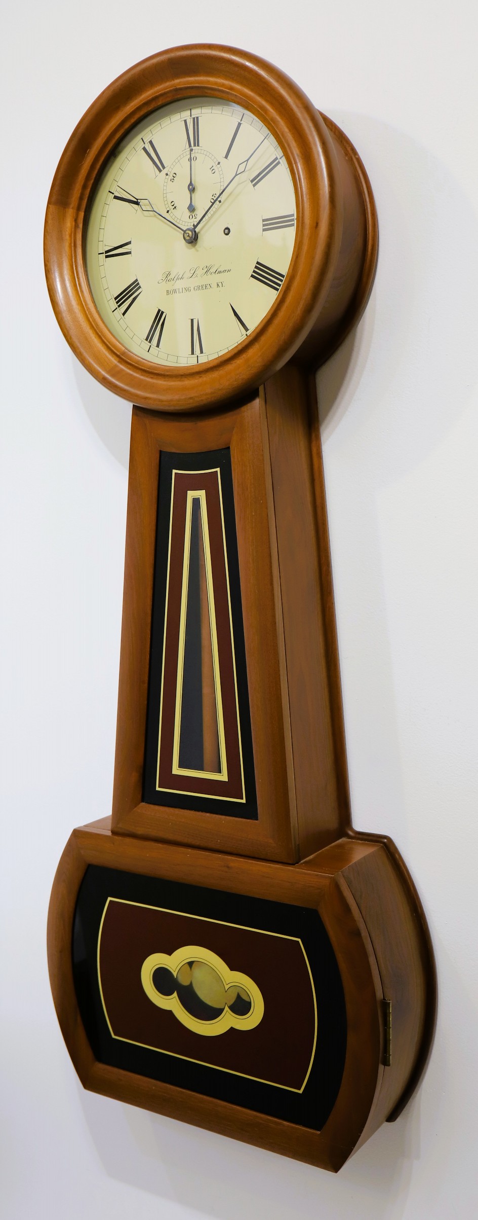 Ralph L Holman “Regulator No. 1” banjo, 1995. Mr. Holman was a friend of Wayne Cline in Bowling Green, KY; this clock was built in the Cline shop under the supervision of Mr. Cline,