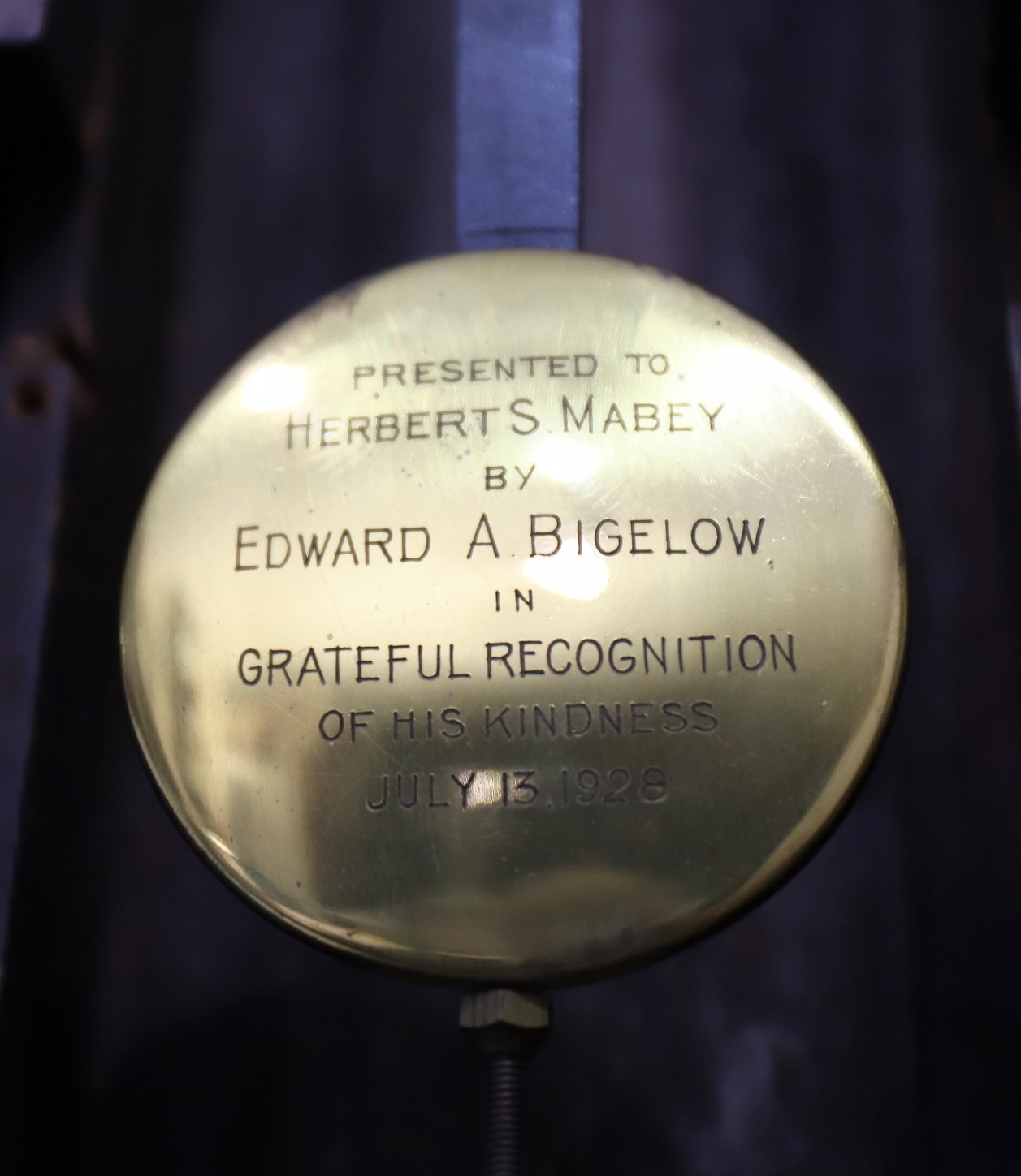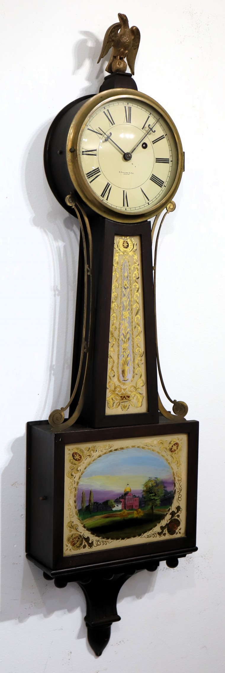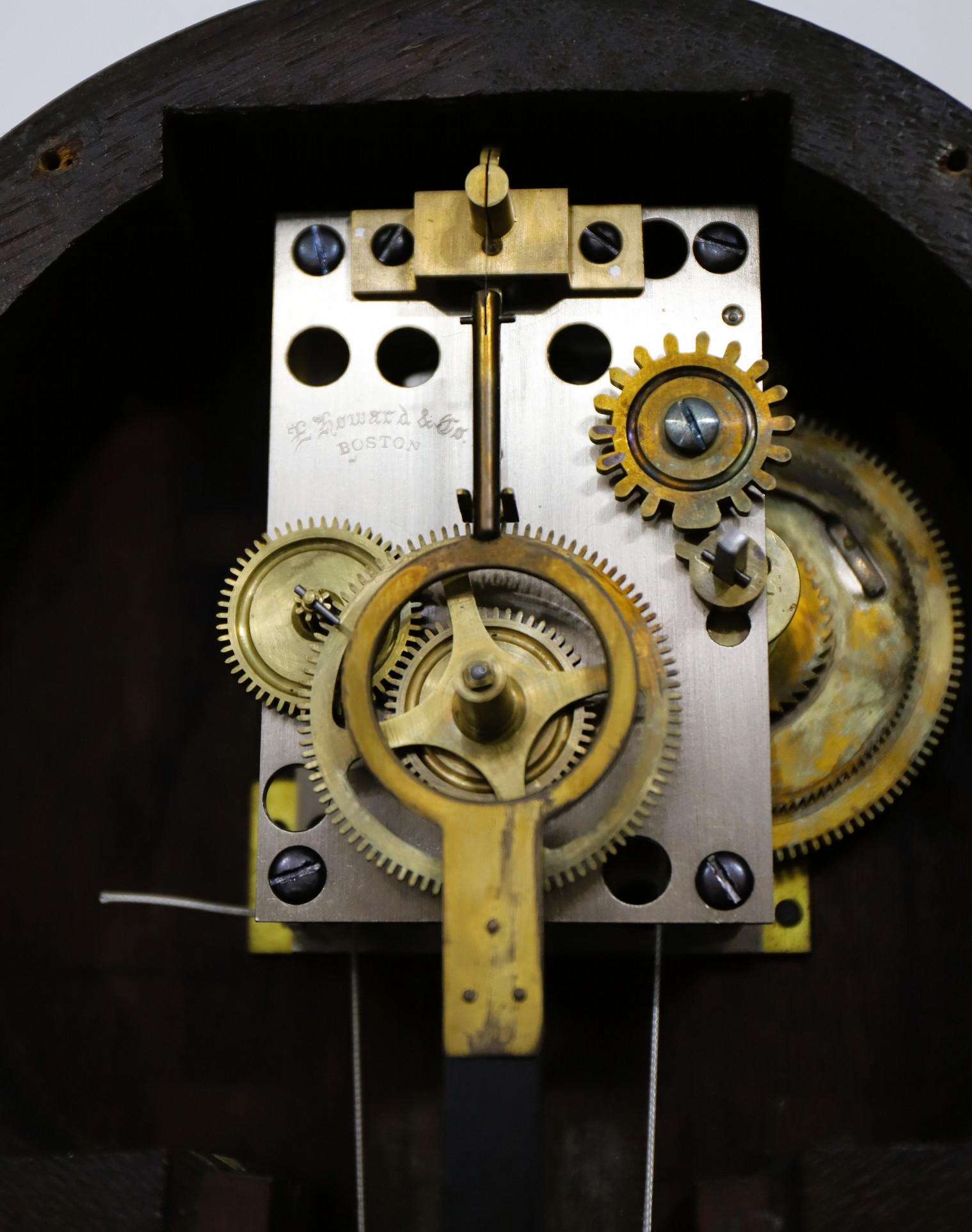 weight shields and a complete pendulum tie-down. A very nice example that could be improved by polishing the brass bezel