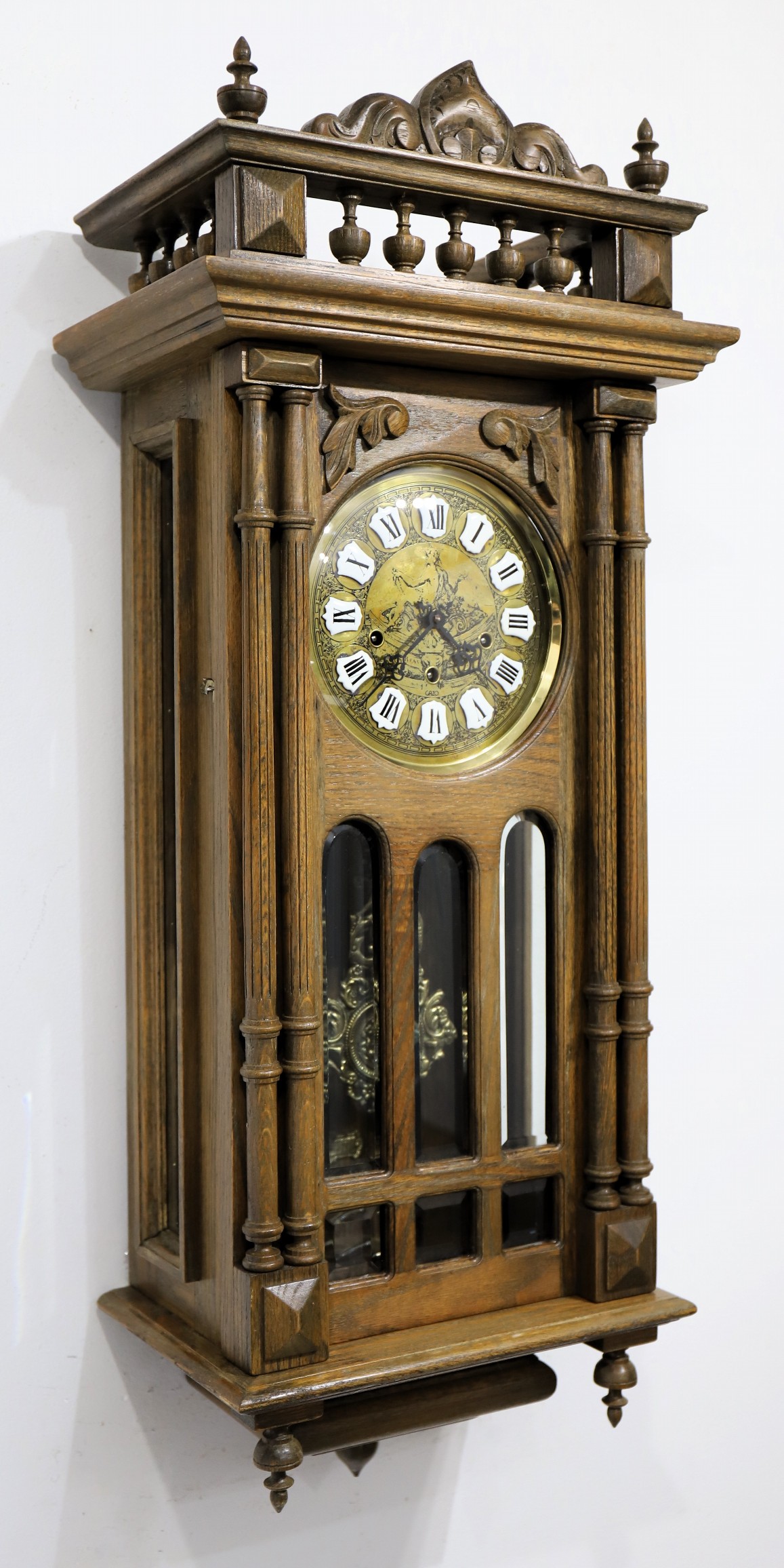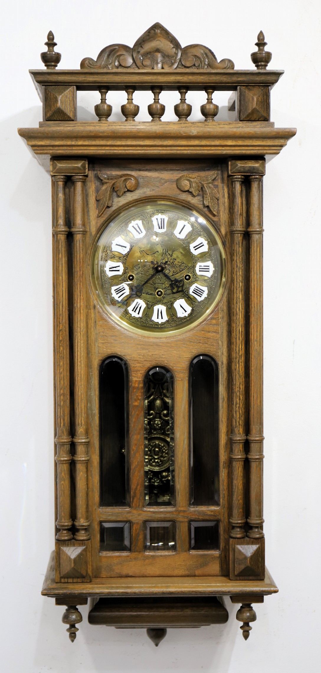 the ‘VI’. The 8-day time, strike, and chime movement was made in West Germany (probably Jauch) and will play Westminster chimes