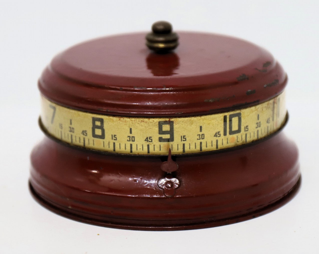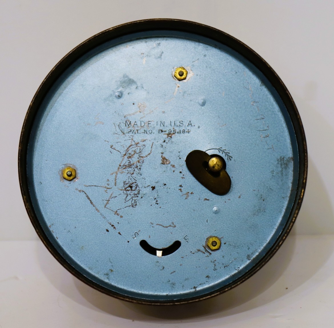 5-inch desktop clock that is 3 inches tall. I believe it has been repainted. It winds on the bottom and is fully wound