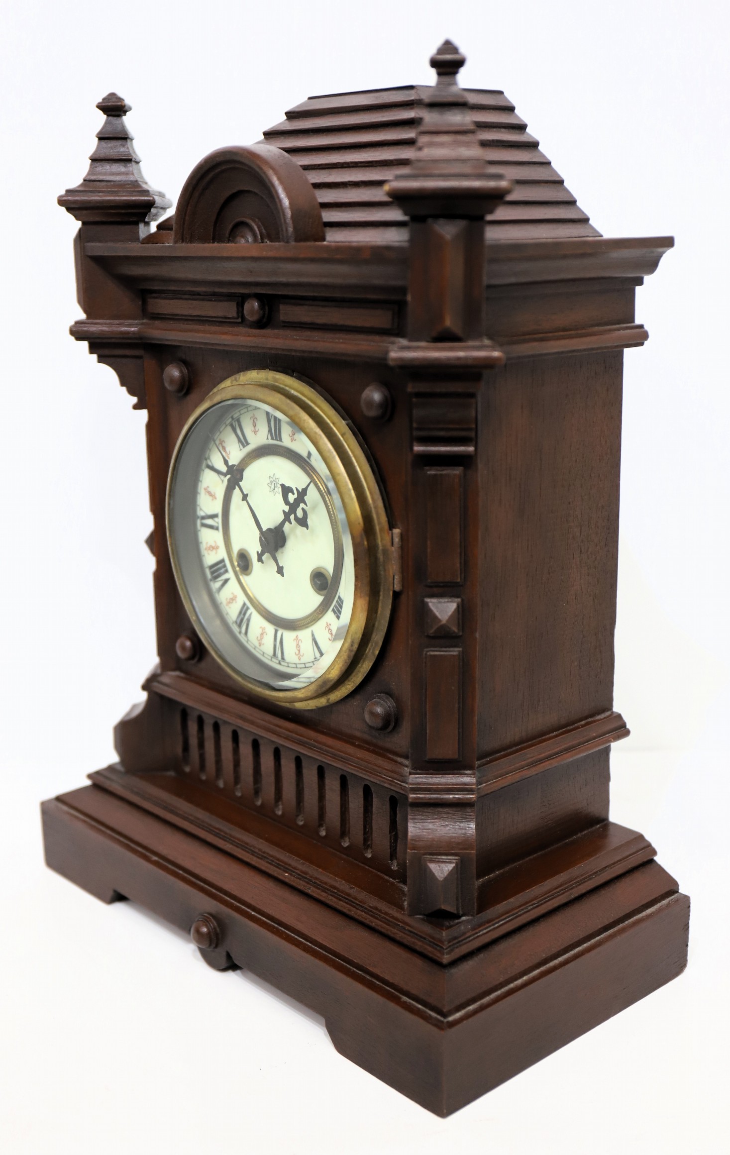 Junghans shelf clock, ca. 1890. A 16-inch walnut