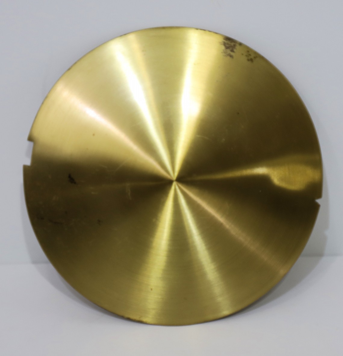 Large brass pendulum bob. Eight inches in diameter, 2 lb 6 oz. Needs a stick; does not look antique. $10–$25.