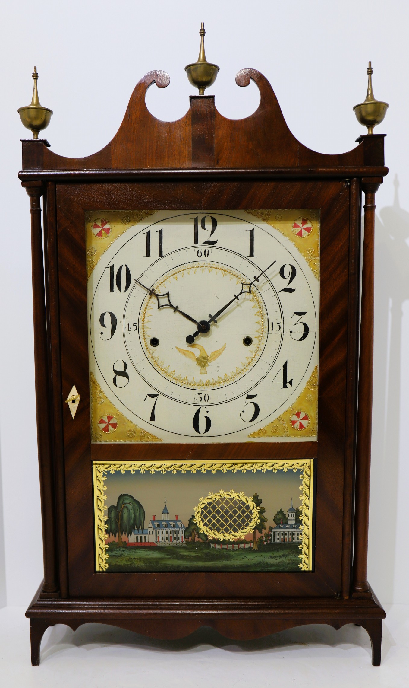 pillar & scroll, ca. 1820. An early edition of the pillar & scroll invented by Eli Terry, here made by his